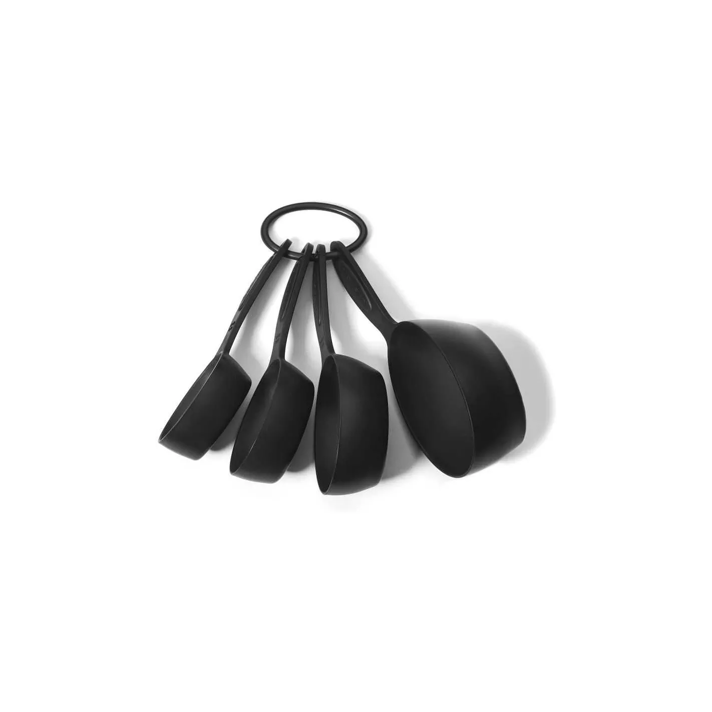 Toda cocina necesita un buen juego de tazas medidoras de acero inoxidable vienen en tamaños de 1, 1/2, 1/3 y 1/4 de taza y se guardan perfectamente juntas en un anillo de almacenamiento. Son aptos para lavavajillas para una fácil limpieza después de hornear ese pastel perfecto.
