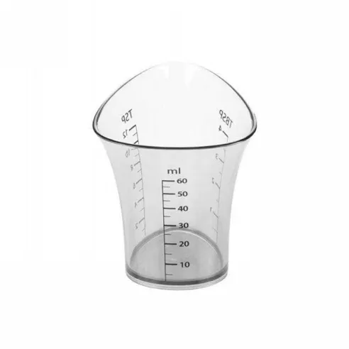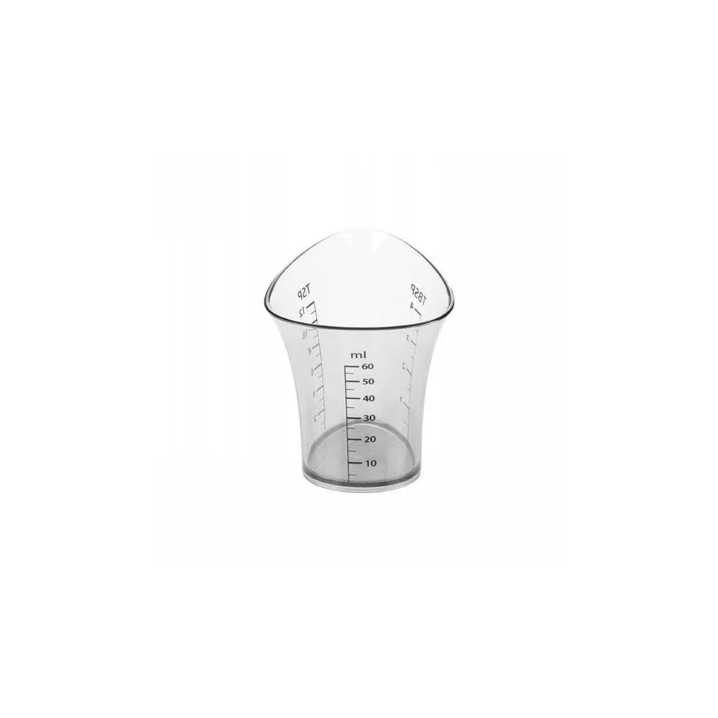 Esta práctica taza para medir es ideal para obtener medidas exactas de ingredientes líquidos o secos en pequeñas cantidades. Con una capacidad de 60 ml, es una herramienta esencial para recetas que requieren precisión en cantidades reducidas.