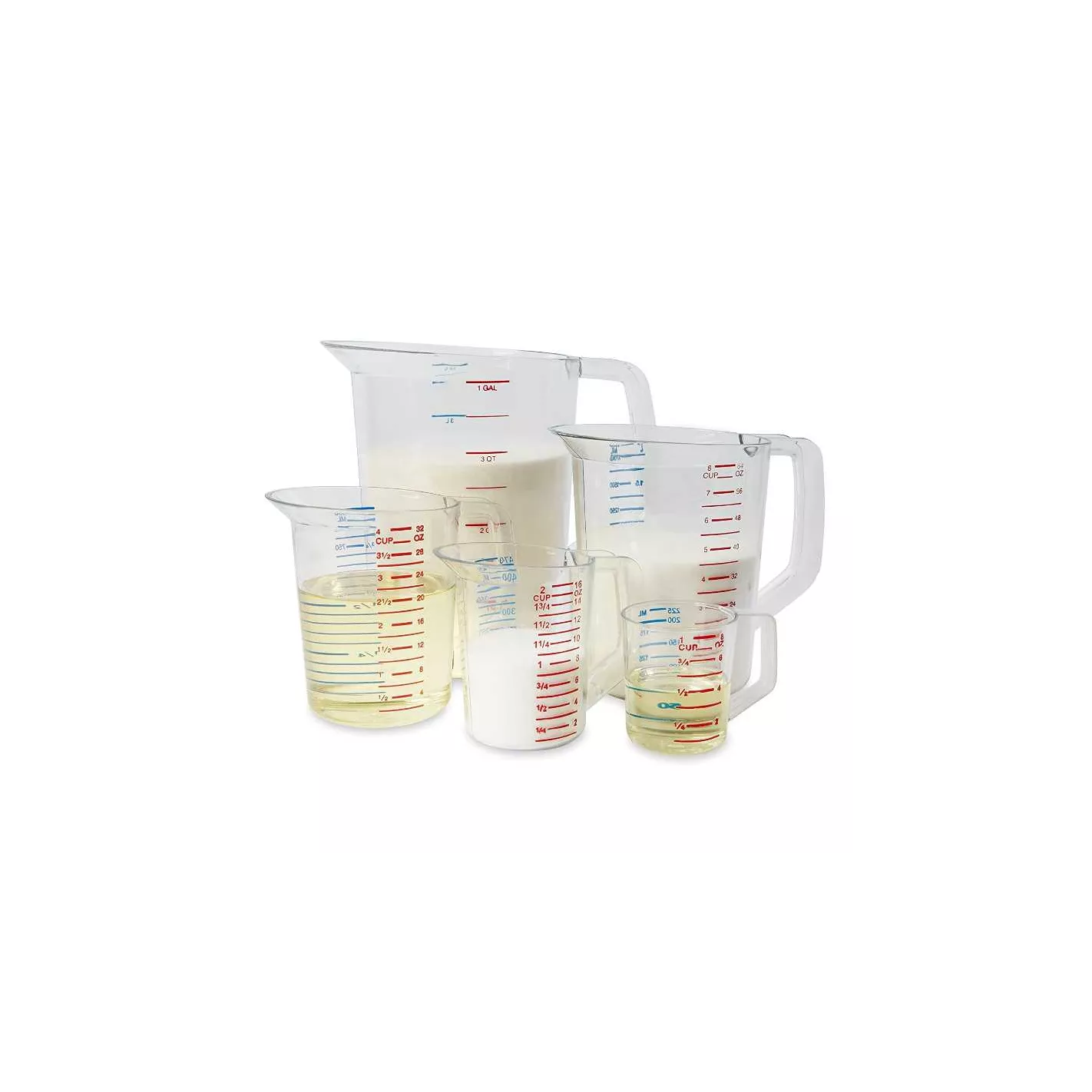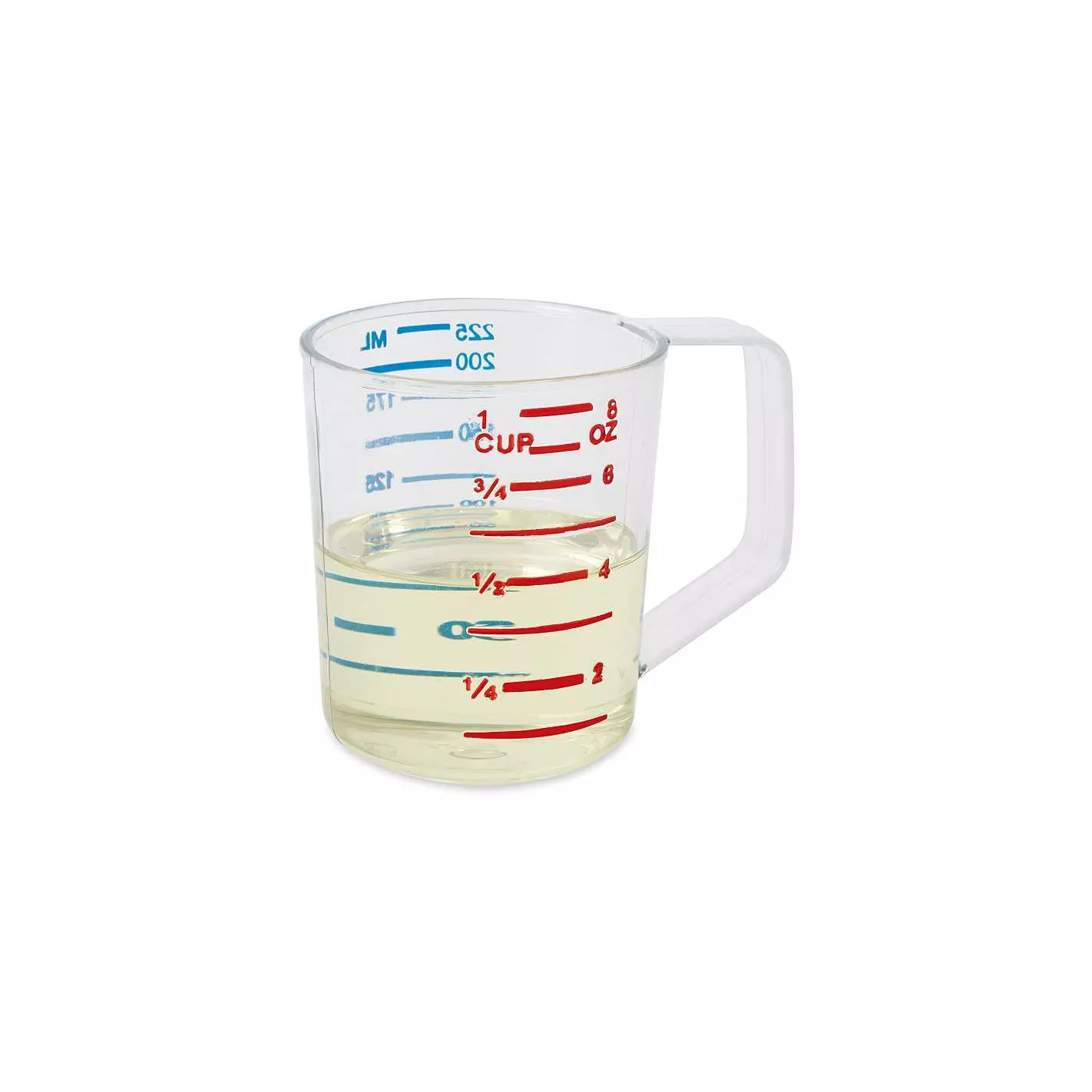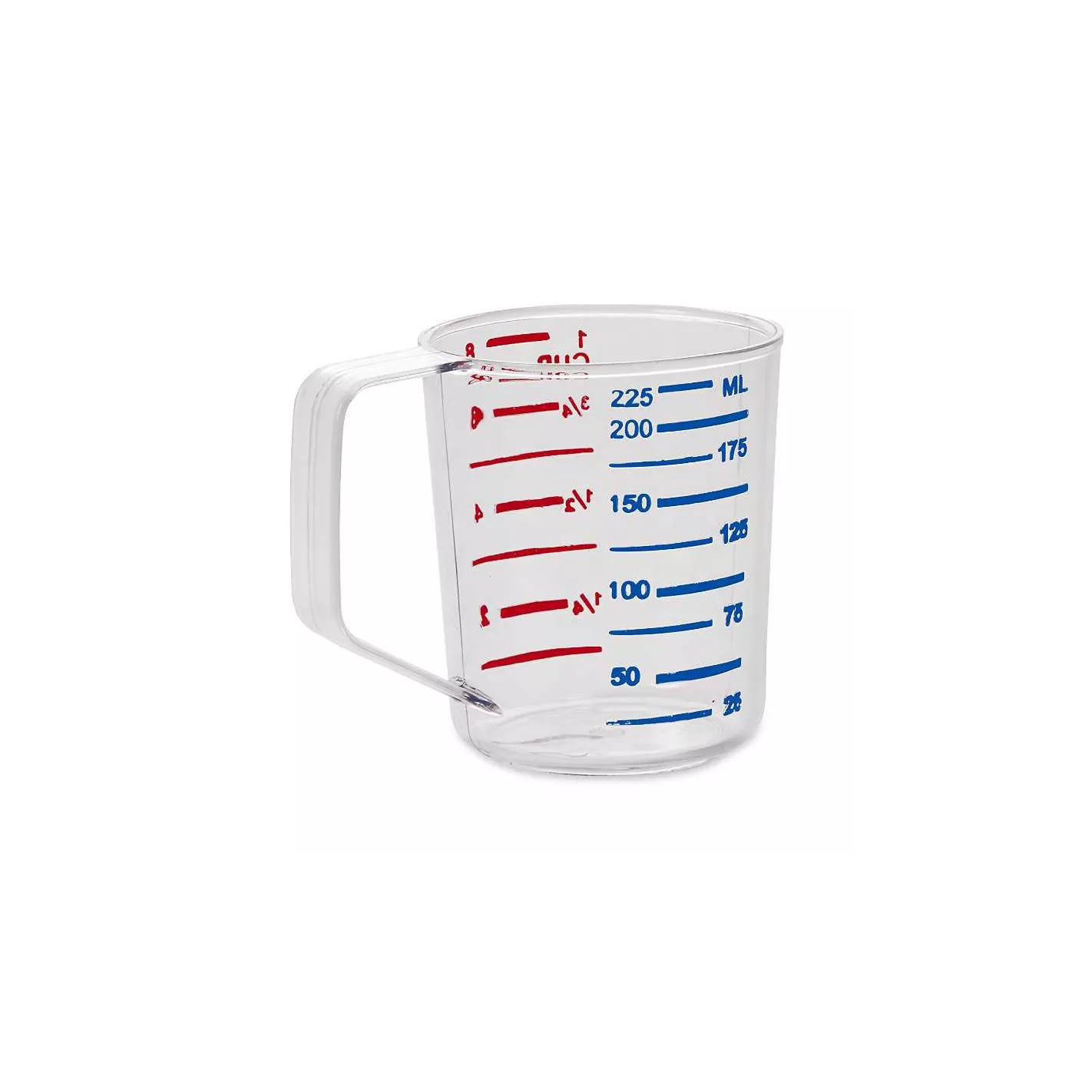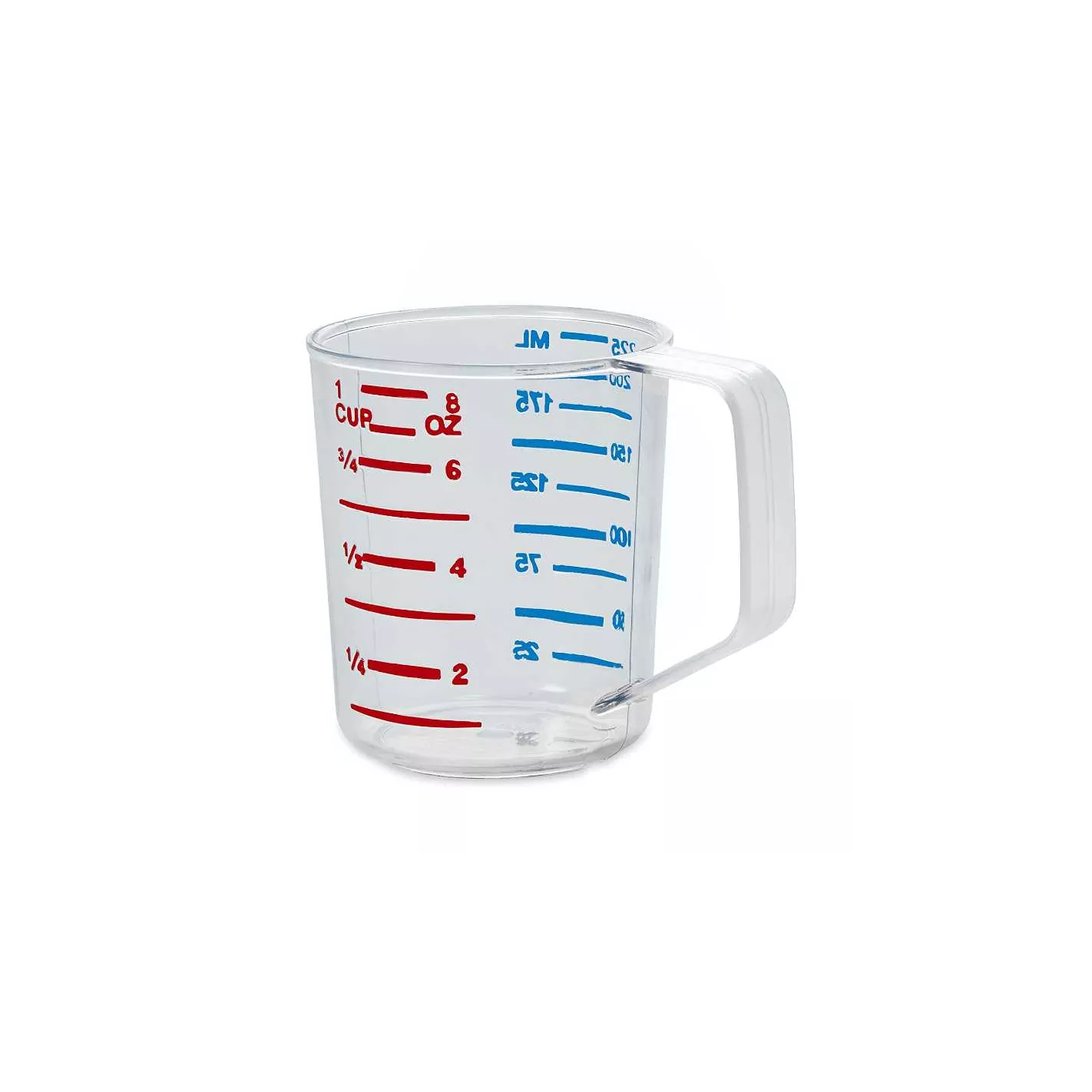 La taza de medición Rubbermaid de 1 taza es transparente para una identificación y medición rápida y fácil de ver los contenidos. Está hecho de policarbonato resistente a la rotura. Medidas métricas marcadas en azul y medidas de copa marcadas en rojo, mida con precisión los ingredientes líquidos o secos.