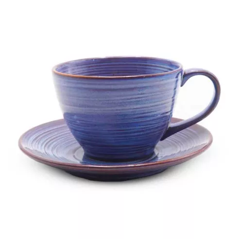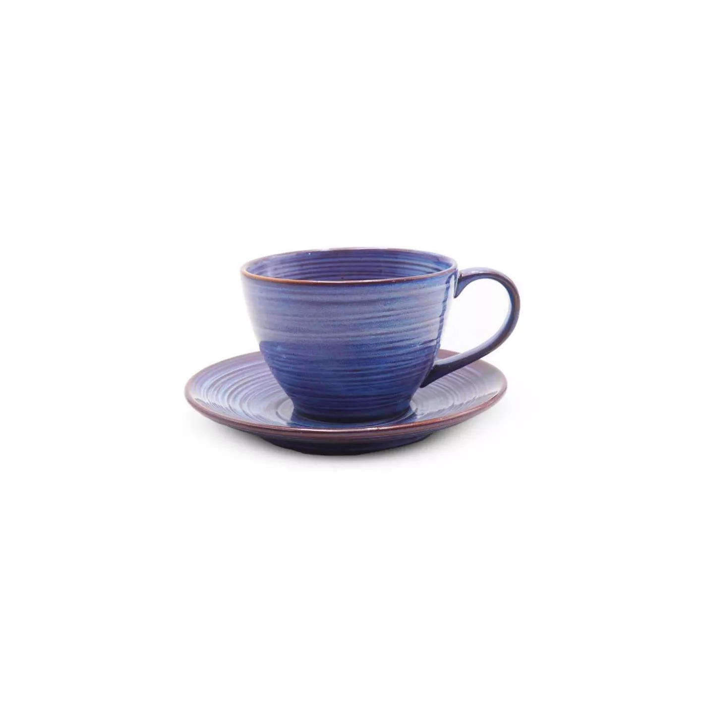 Taza y Plato de Ceramica Azul, Set de 2 Unidades RUSTIC 22355-B
