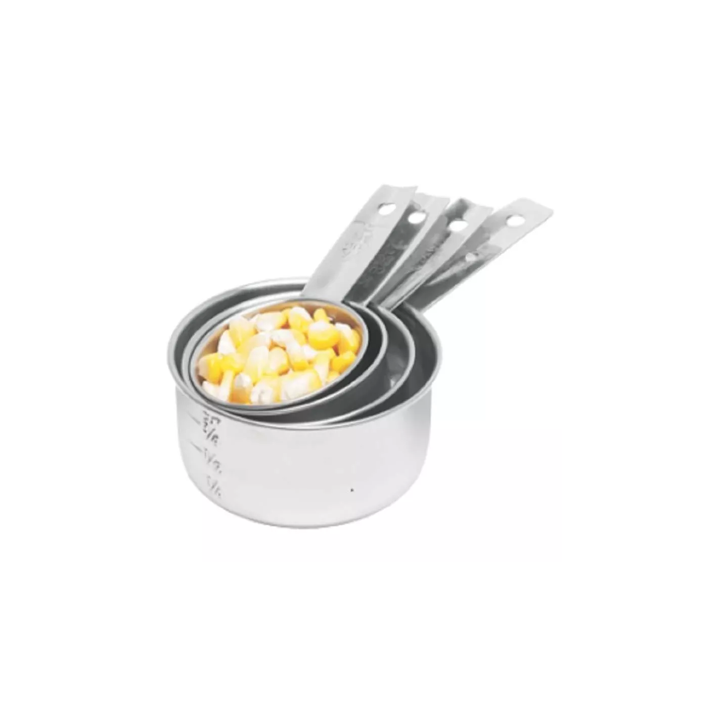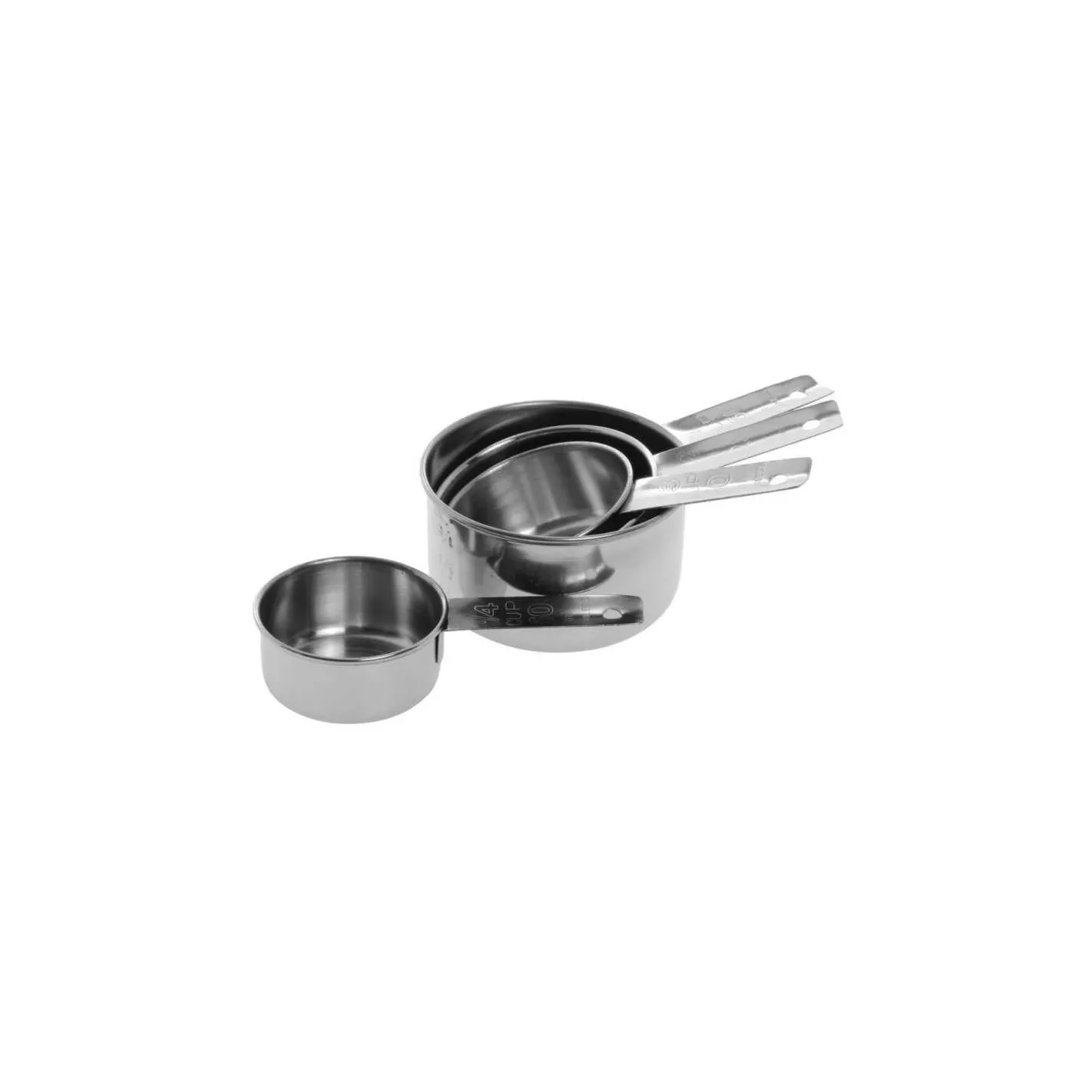 Todo un set completo de 4 unidades con marcas sobre su asa hechas en relieve para que nunca se borren y siempre esten a la vista, cada taza esta construida con acero inoxidable de alta calidad. El juego incluye una taza de 1/4, una de 1/3, una de 1/2 y una de 1