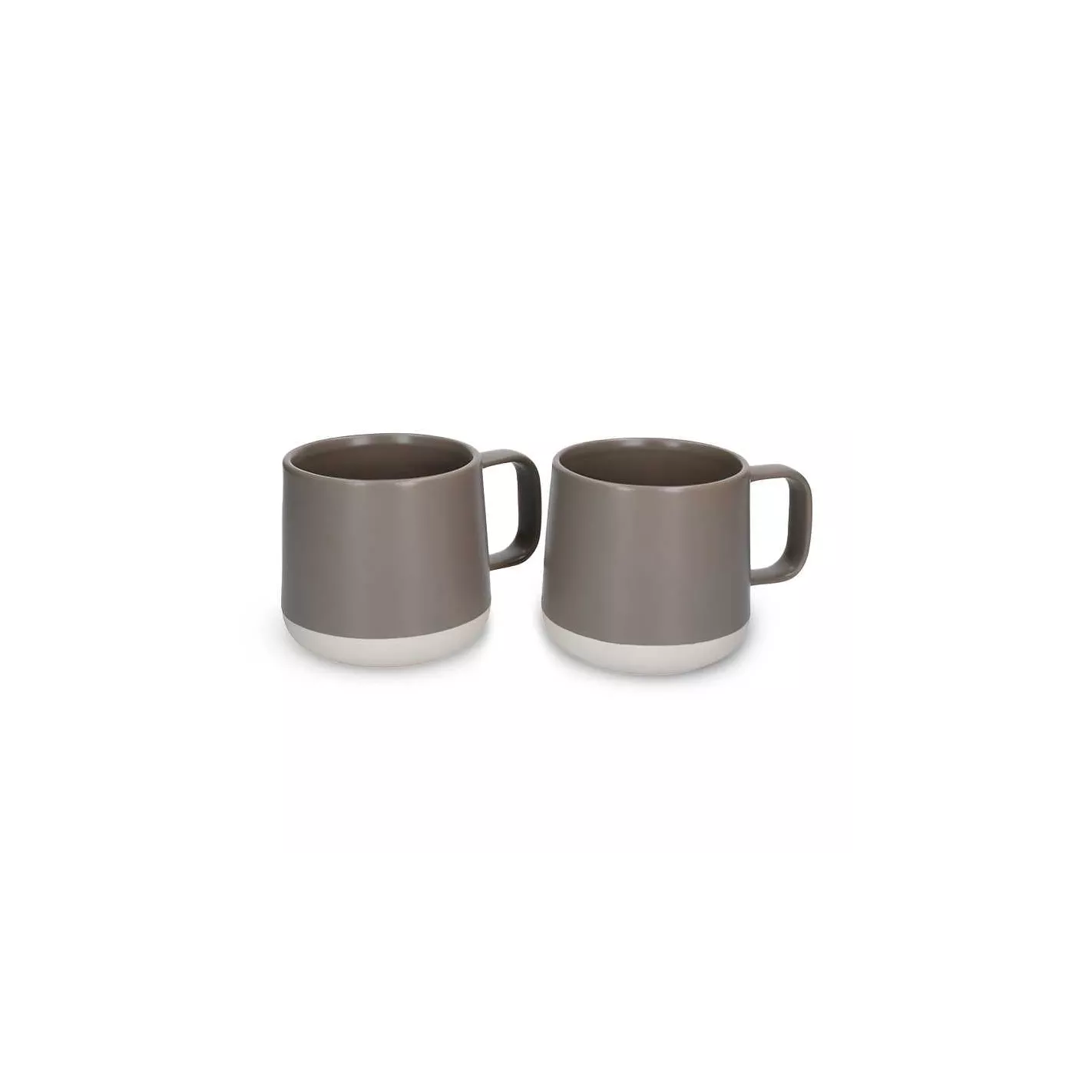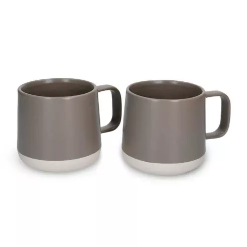 Fabricadas con cerámica de gres duradera, estas hermosas tazas con diseño ergonómico son perfectas para el uso diario y combinan estética con función. El juego de dos piezas viene en un nuevo color café con leche y presenta una lujosa combinación de acabados mate y brillante.