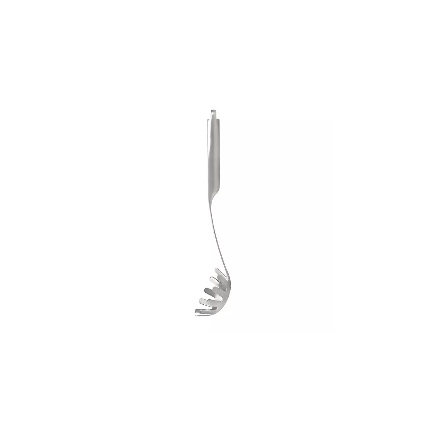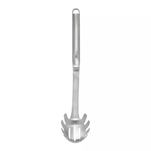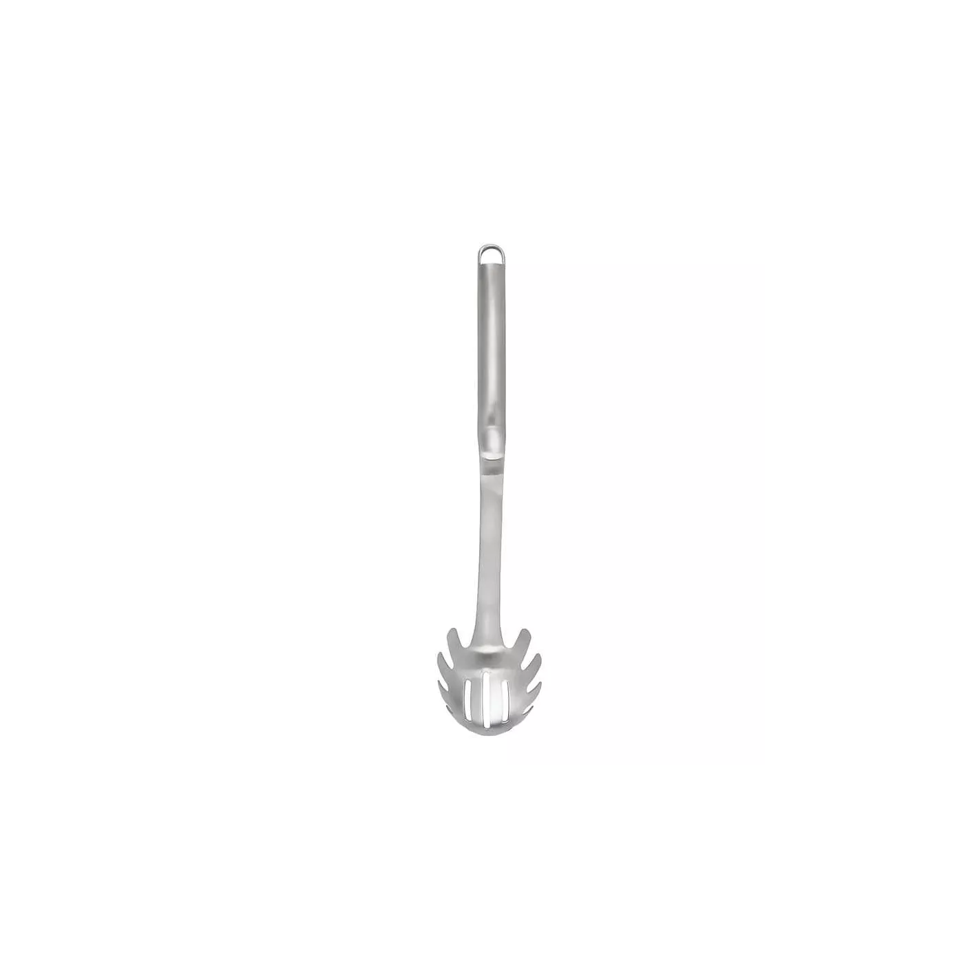 Este tenedor para pasta de primera calidad es un elemento esencial en la cocina, ideal para sacar y servir pasta. Tiene dientes para agarrar espaguetis y un orificio para ayudar a escurrir los líquidos. Esta herramienta, duradera para el uso diario, está hecha de acero inoxidable, lo que también le da un aspecto elegante y moderno.