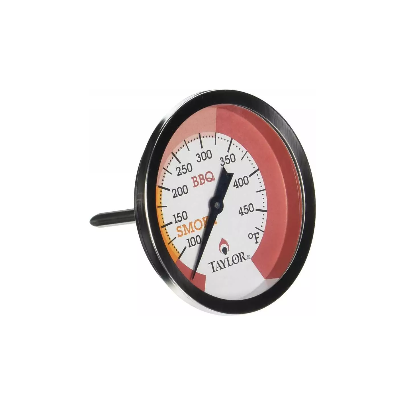 Este termómetro ahumador es otro ejemplo de lo que hace de Taylor un nombre confiable en las cocinas de todo el mundo. Se monta directamente sobre un humo para un monitoreo preciso de la temperatura interna del aire. Los entusiastas serios de la parrilla exigen un rendimiento y durabilidad serios, que es exactamente lo que hace brillar el termómetro Taylor 814GW para parrilla y ahumador. Hecho a mano con acero inoxidable resistente, el dial de gran tamaño de 2 3/4 pulgadas presenta un fondo luminiscente para su uso en condiciones de poca luz. El dial también indica los rangos apropiados de humo y barbacoa mediante el uso de una codificación de color intuitiva. Mientras posee un vástago de acero inoxidable, el termómetro también se puede montar en la pared del ahumador para lecturas precisas entre 100 grados y 500 grados F.