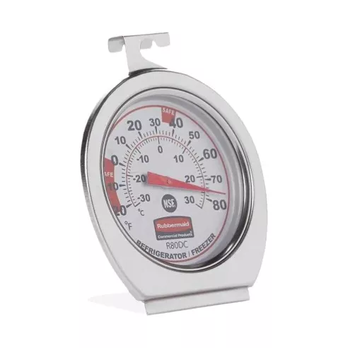 Está hecho de acero inoxidable y tiene una lente resistente a los golpes. Su pantalla clara tiene grandes números que ayudan al usuario a controlar las temperaturas. Puede colgarse o sostenerse por sí solo y se lee tanto en grados Fahrenheit como en grados Celsius con un rango de temperatura de -30° a 30° Centígrados / -20° a 80° Fahrenheit