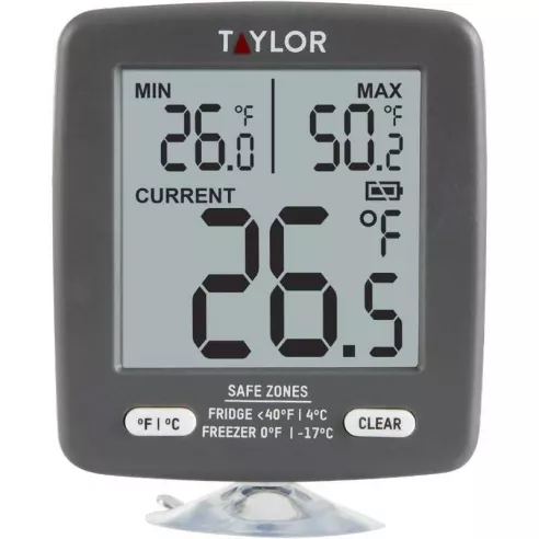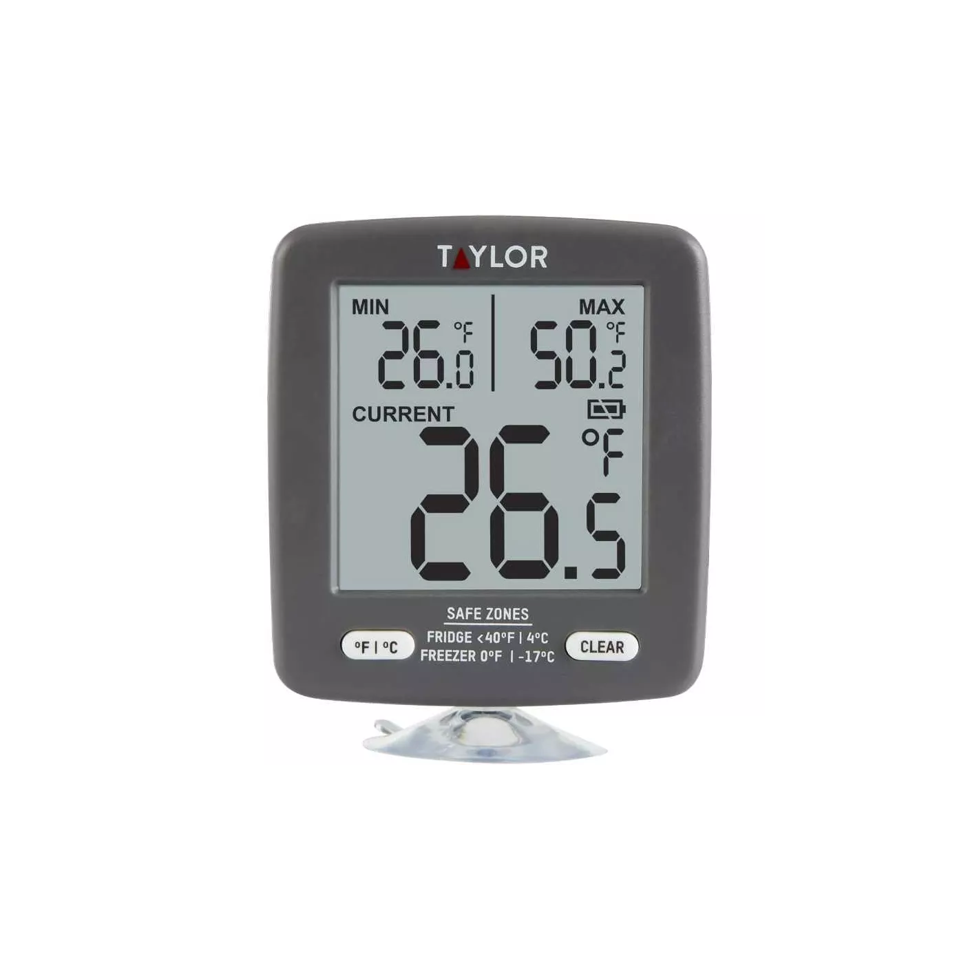 El termómetro digital para refrigerador/congelador Taylor tiene una pantalla LCD extra grande con las temperaturas mínimas y máximas registradas para que pueda monitorear fácilmente los cambios de temperatura y hacer ajustes a su electrodoméstico según sea necesario.