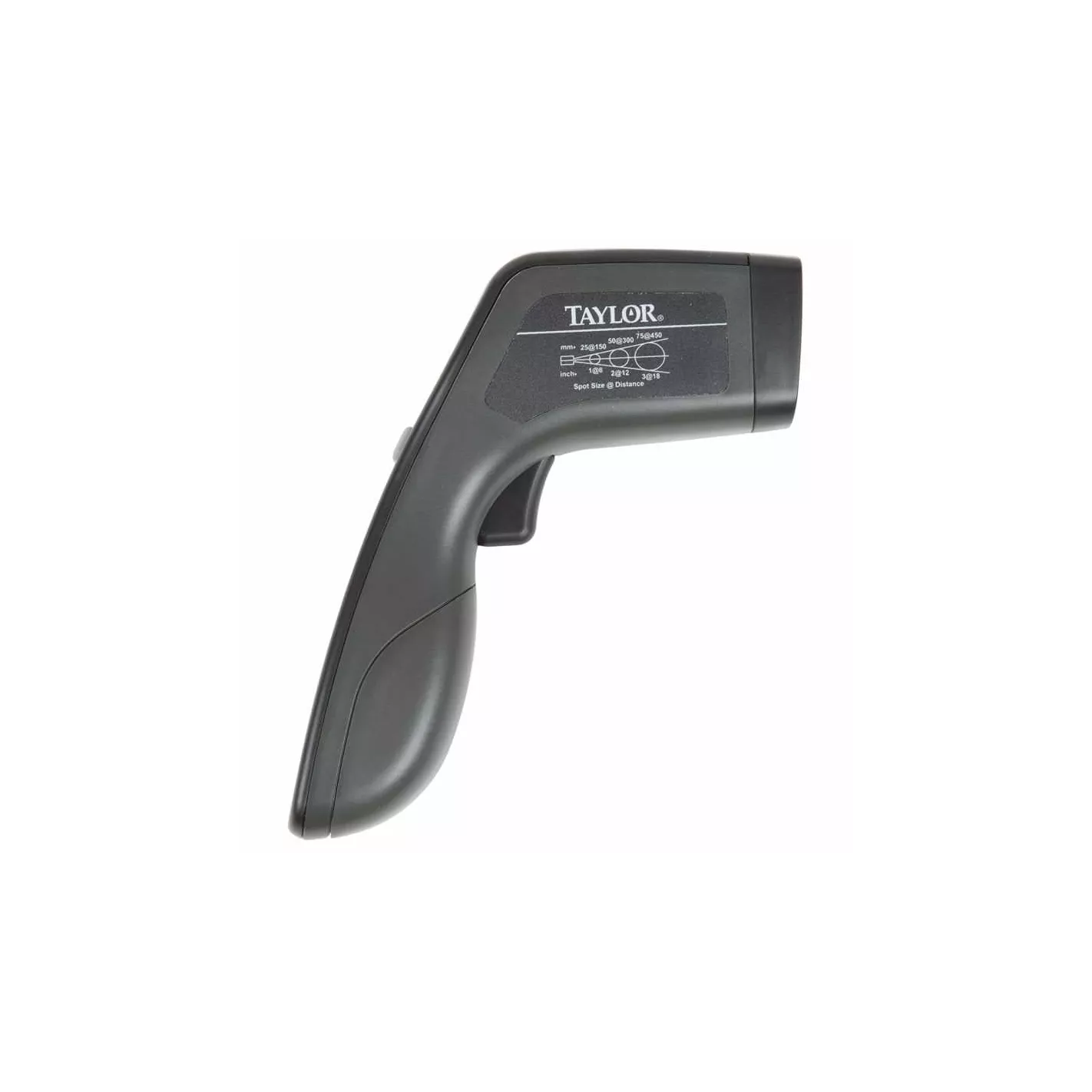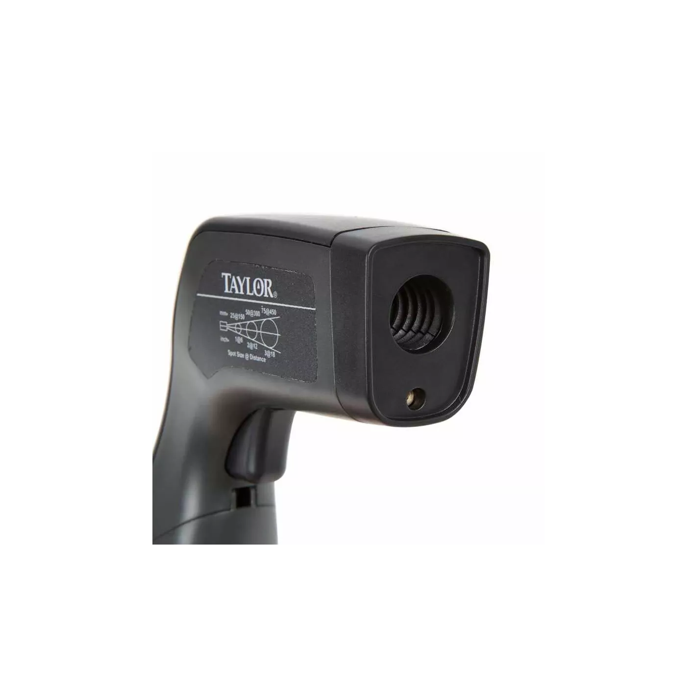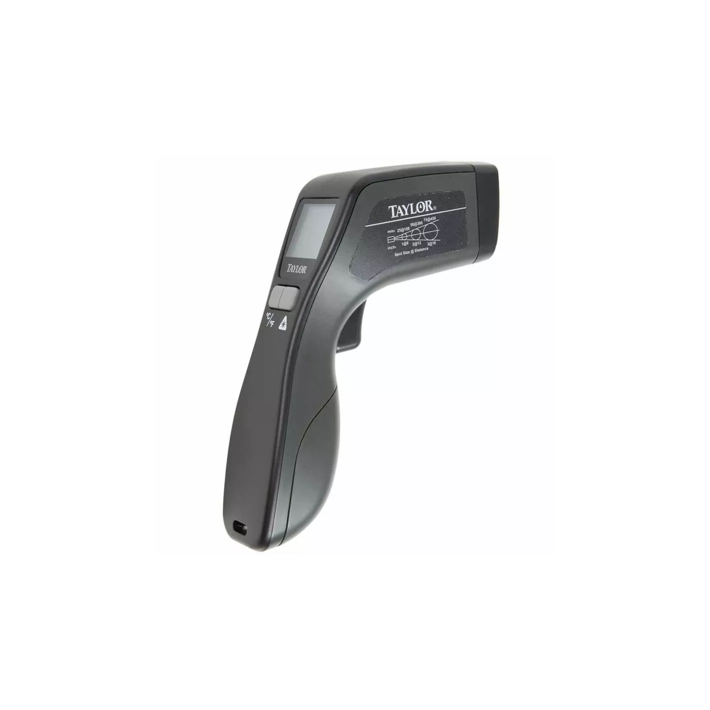 Este termómetro de infrarrojos Taylor tiene un puntero láser que permite lecturas rápidas de cocción y mantener las temperaturas. El dispositivo puede mostrar temperaturas de -49° a 750°F (-45° a 750.2 °F). Este termómetro de infrarrojos tiene una relación de distancia a punto de 6:1. El dispositivo se apaga automáticamente después de 15 segundos sin cambios de temperatura para conservar la duración de la batería. Con una memoria máxima mantiene las características junto con un indicador de batería baja.