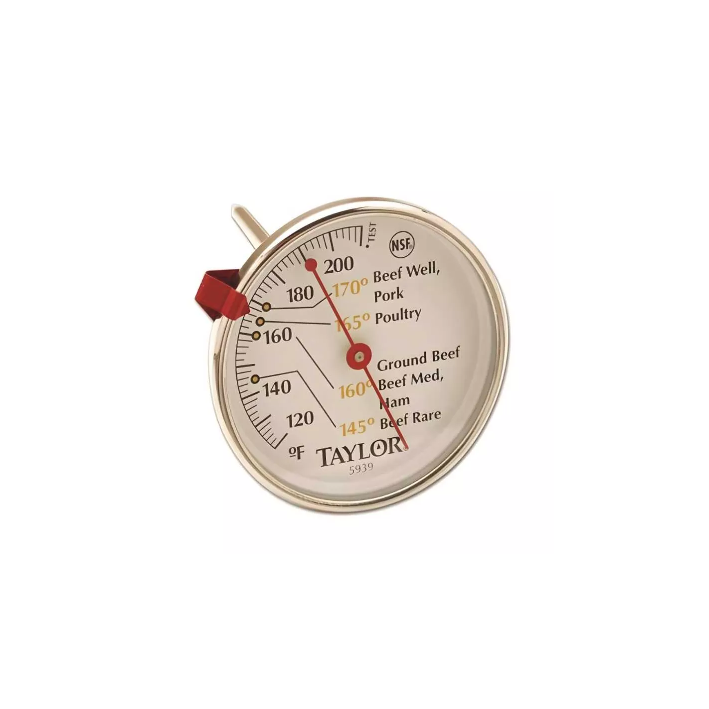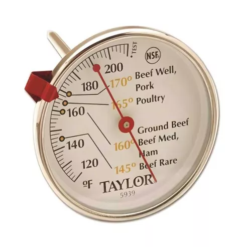 Monitoreo de temperatura lento y constante para obtener los mejores y más jugosos resultados. Es seguro dejar este termómetro para carnes con lente de vidrio en el horno o la parrilla durante el uso. Con su pantalla de 3 pulgadas fácil de leer y la guía de temperatura de tostado impresa (estándares del USDA), este termómetro ayudará con las comidas perfectamente preparadas en todo momento. El historial de Taylor de lecturas de temperatura altamente precisas no te decepcionará. Este termómetro tiene una escala de 120° F a 200° F.
