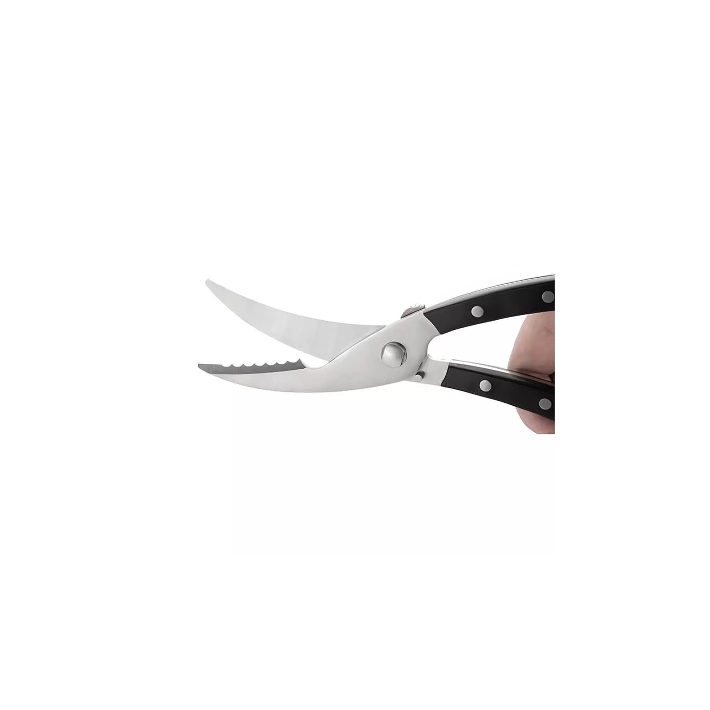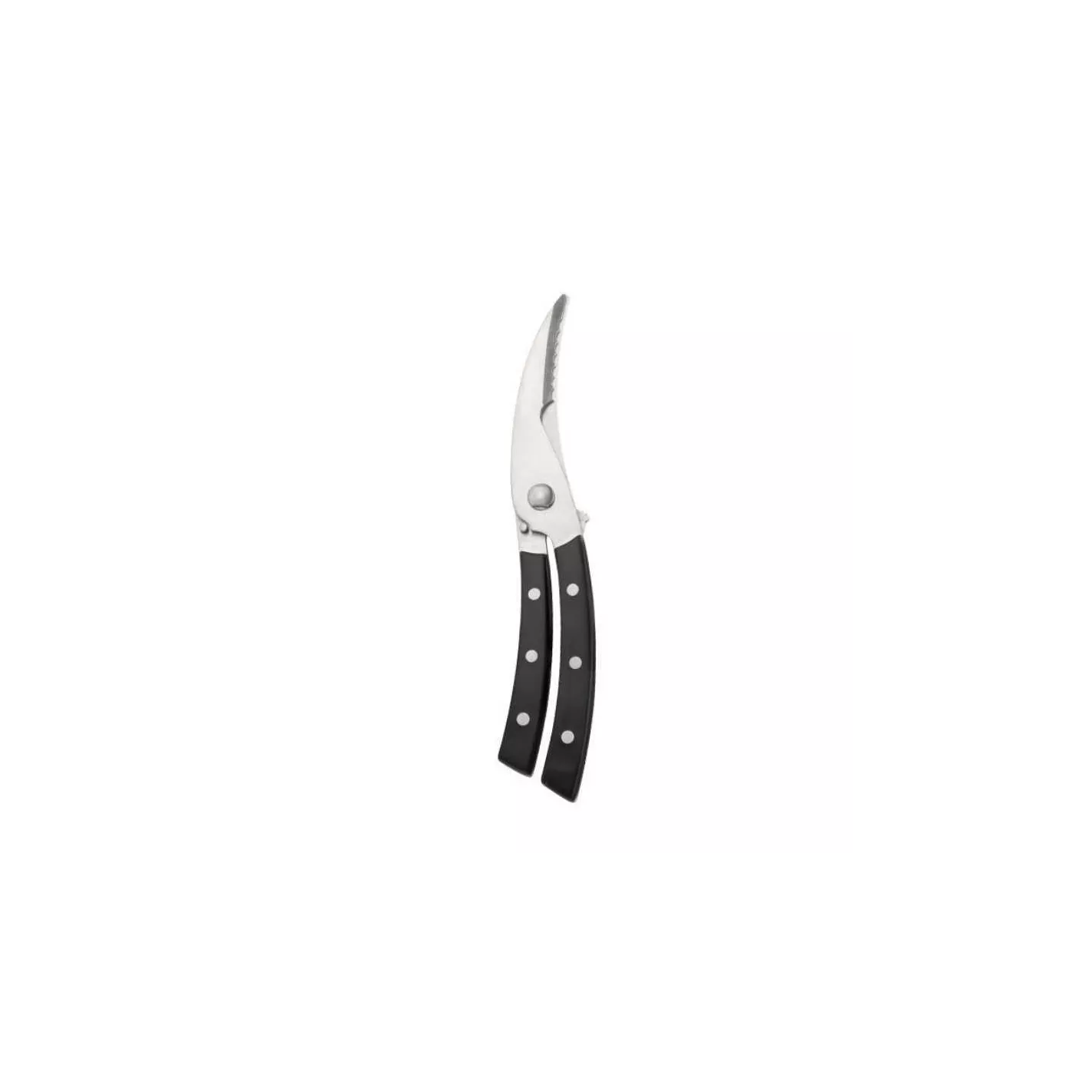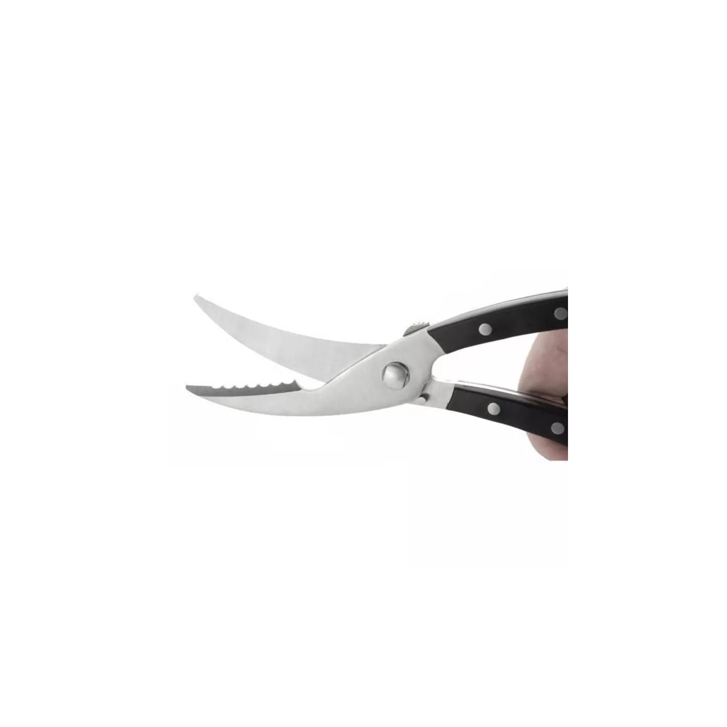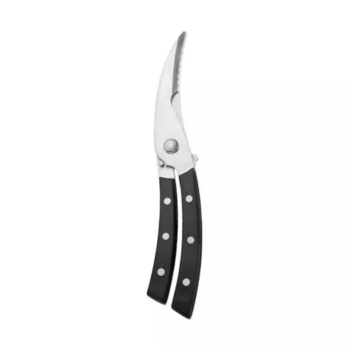 Tijera sólida para aves con un filo dentado especial para quebrar fácilmente huesos gruesos y una punta afilada para cortar la piel. Hecho de acero inoxidable de alta calidad, provisto de un mango ergonómico y un cierre de seguridad.