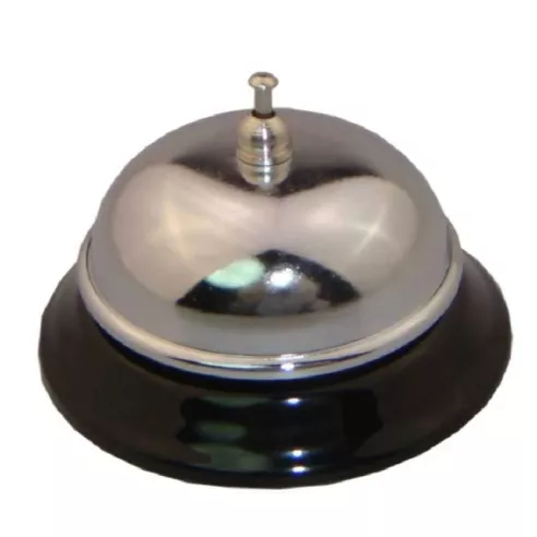 El timbre para mostrador es de diseño cromado con forma redonda y su medida es de 3.5 pulgadas. Su sonido es leve por lo cual lo puede usar tanto en una libreria o lugar donde la concentración tenga que ser optima.