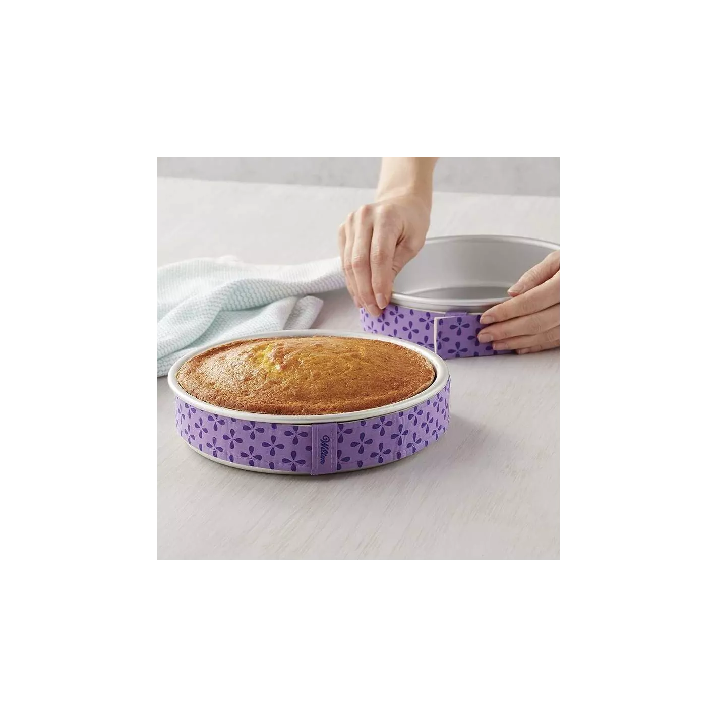 ¿Alguna vez se preguntó cómo los profesionales hornean pasteles húmedos y nivelados sin coronas, grietas o bordes crujientes? Usan tiras para hornear incluso. Estas bandas de tela aíslan los lados de su molde para que su masa se cocine de manera uniforme. Después de colocarlo en la sartén, remoje las tiras en agua fría, retire el exceso, envuelva la sartén y ciérrela para apretar. Nunca más tendrás que nivelar un pastel.