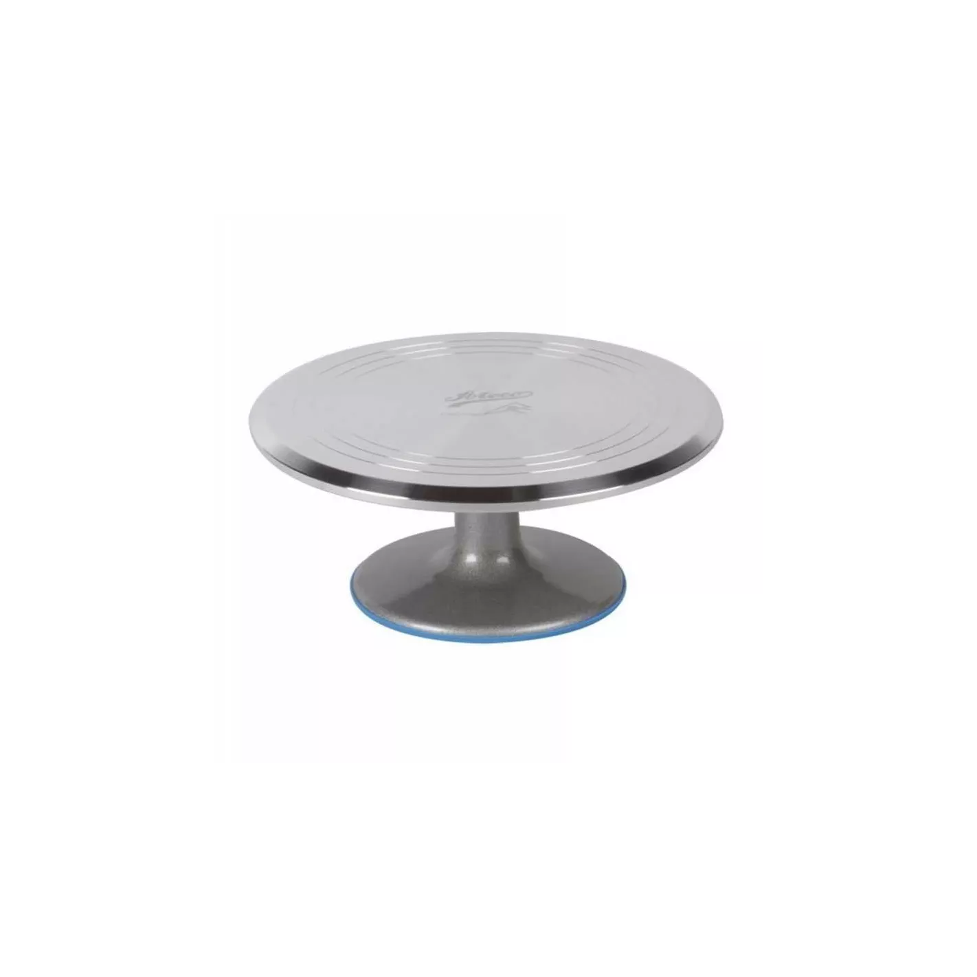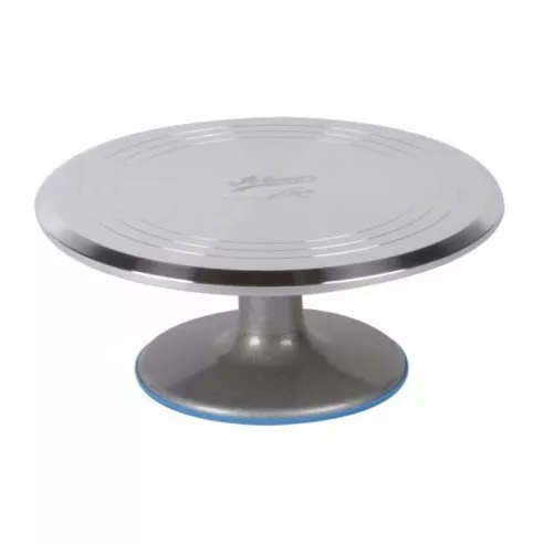 Hecho para satisfacer las necesidades del decorador de pasteles o pastelería, esta tornaesa para pasteles es el complemento perfecto para su panadería, cafetería, restaurante o servicio de catering. Hecho de aluminio duradero, este soporte está diseñado para soportar pasteles de varios niveles y es el complemento perfecto para su establecimiento. Funcional y atractivo, este soporte giratorio para pasteles tiene una apariencia elegante y profesional y se puede usar tanto para preparar como para exhibir.