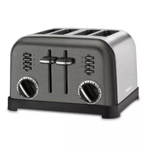 La tostadora cuenta con una hermosa carcasa de acero inoxidable cepillado con detalles de cromo pulido y negro. Esta tostadora se ve elegante, sino que los resultados son tan buenos como parece, con controles personalizados para descongelar y tostar pan, pasteles y bagels cuatro a la vez para ti y un amigo. Esta tostadora cuenta con ranuras para tostar de 1/2 pulgadas de ancho con una palanca de carro de elevación extra.