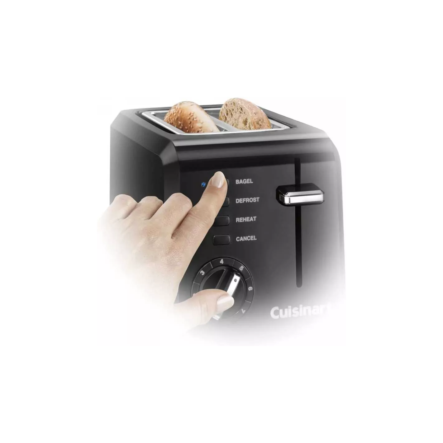 Toma el control de tu tostadora compacta Cuisinart de 2 rebanadas, que cuenta con siete tonos de tostado. Esta tostadora compacta ahorra espacio, ya sea colocada de lado o hacia adelante para adaptarse a cualquier encimera de cocina o incluso dormitorio. Ya sea que desee un panecillo tostado grueso para picar, pasteles tostadores o pan en rodajas finas para un giro saludable en los croutones, las ranuras anchas y el carro de alta elevación hacen que sea fácil de brindar cada vez.