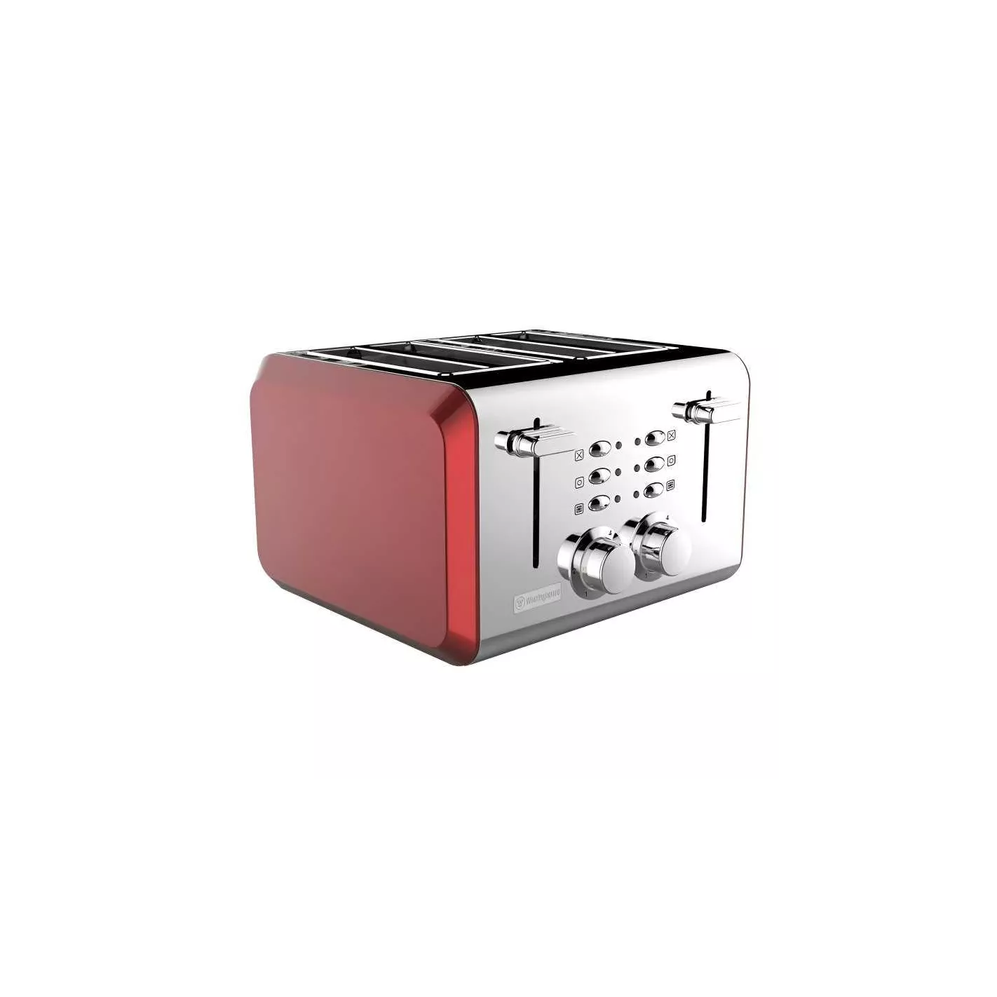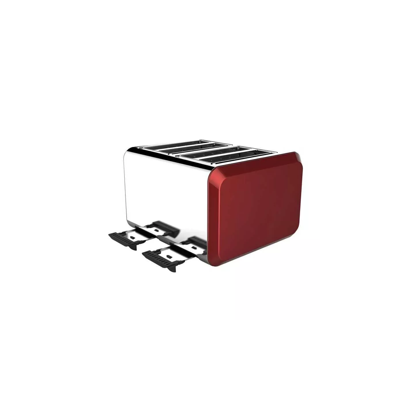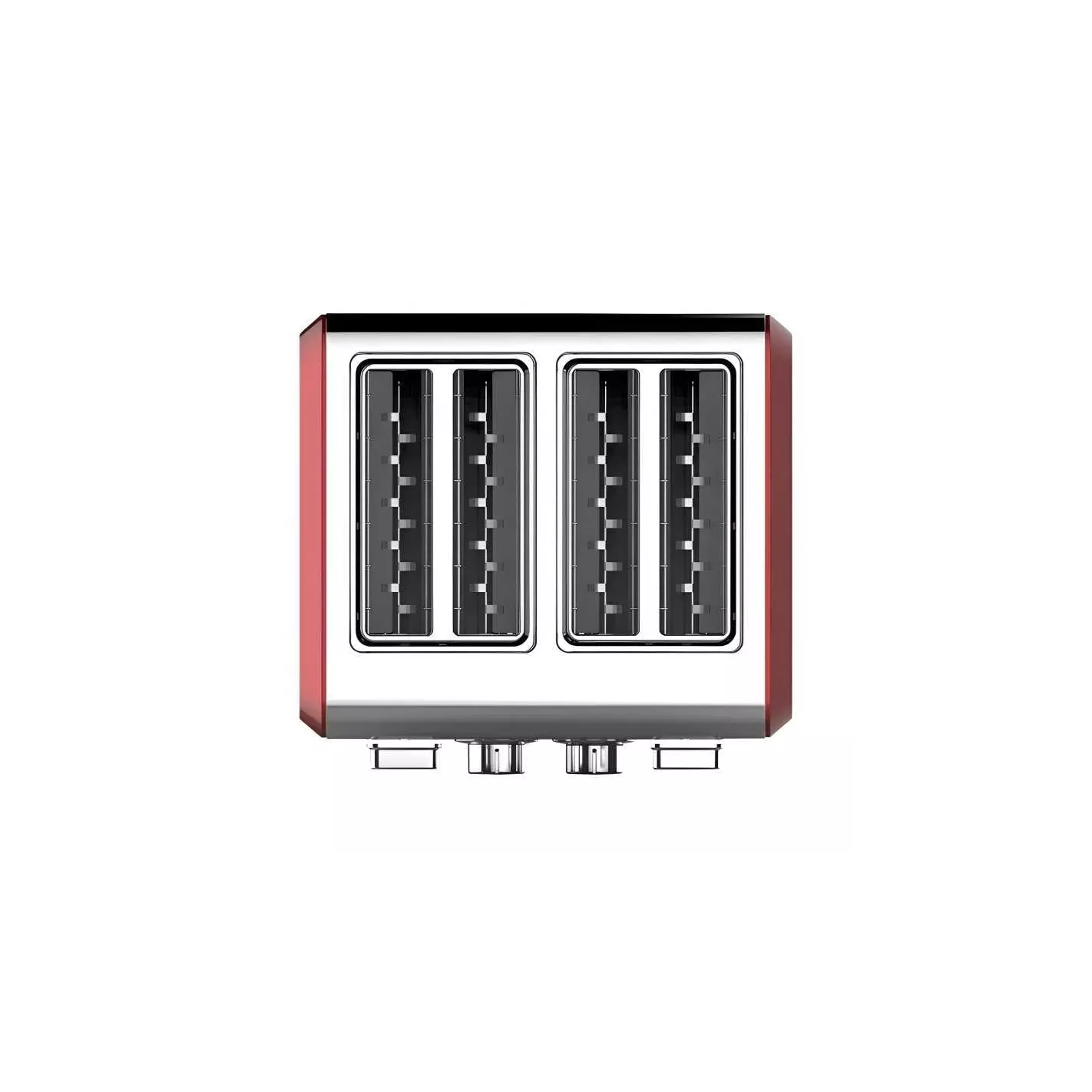 Tostadora para 4 rebanadas con indicador de color iluminado en azul, control de tostado variable, bandeja para migas deslizable y guía para centrar el pan.