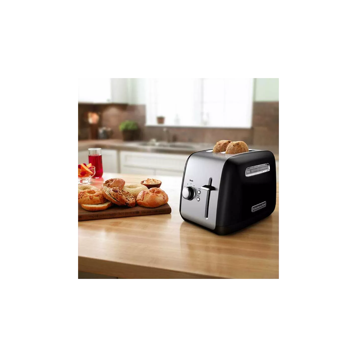 La tostadora de 2 rebanadas de KitchenAid tiene botones de cromo que brillan con luz azul de retroiluminación cuando están en uso. Las ranuras extra anchas aceptarán los bagels, panes o pasteles más gruesos y la cavidad de tostado de acero extra profunda asegura un dorado uniforme. Los bastidores ajustan automáticamente el ancho de la ranura para cortes gruesos o delgados, manteniendo la comida en posición vertical para tostar incluso. Cuando la comida está lista, la palanca de elevación manual facilita sacarla de la tostadora. La selección de la función de tostado de bagel reduce la potencia en un lado de los elementos de calentamiento en un 50% para producir un bagel mejor tostado. Además, la configuración ajustable de 5 colores garantiza que sus alimentos salgan de la forma que deseeUSO: DOMESTICO