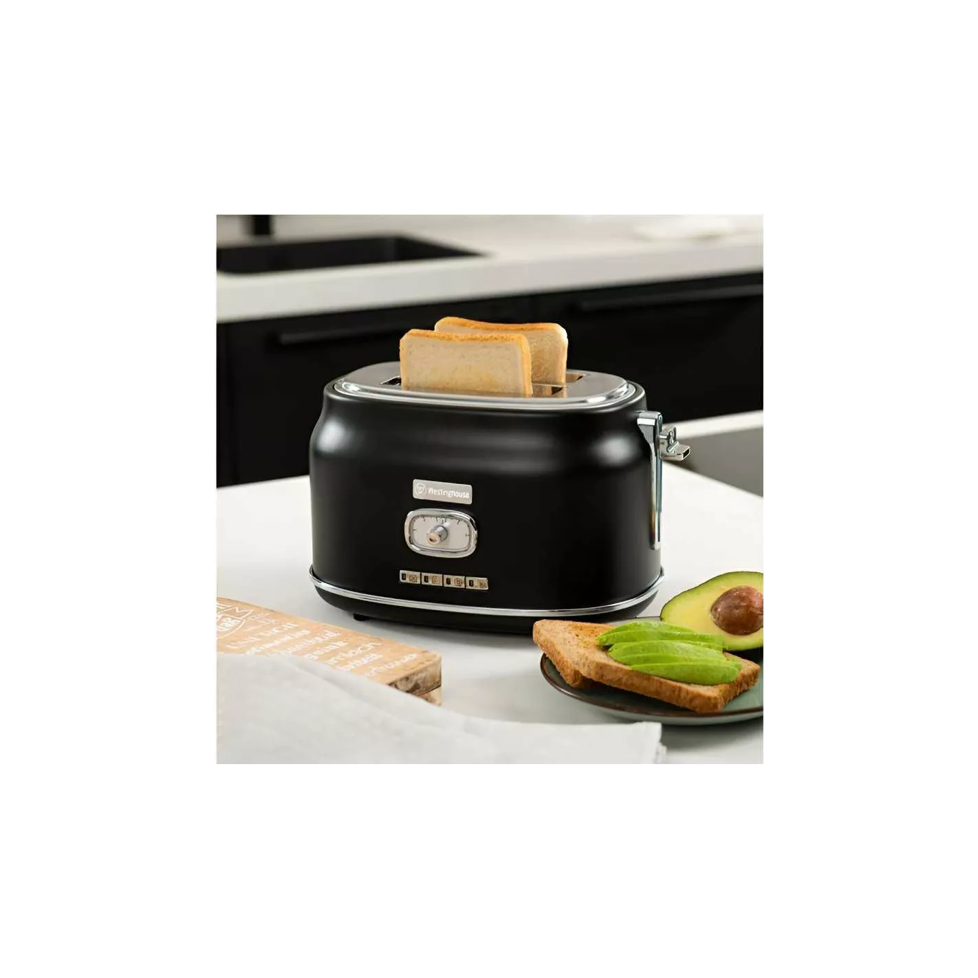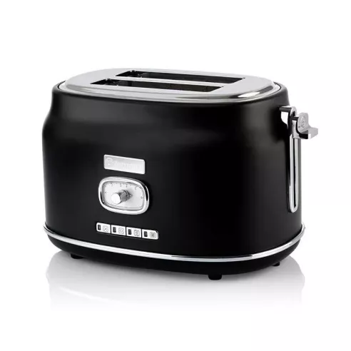 Un aspecto retro para un desayuno delicioso. Es ideal para tostar, ya que te permite elegir el nivel de tostado que tu prefieras. Es apta para toda la familia porque sus 2 ranuras anchas permiten tostar hasta 2 rebanadas a la vez.