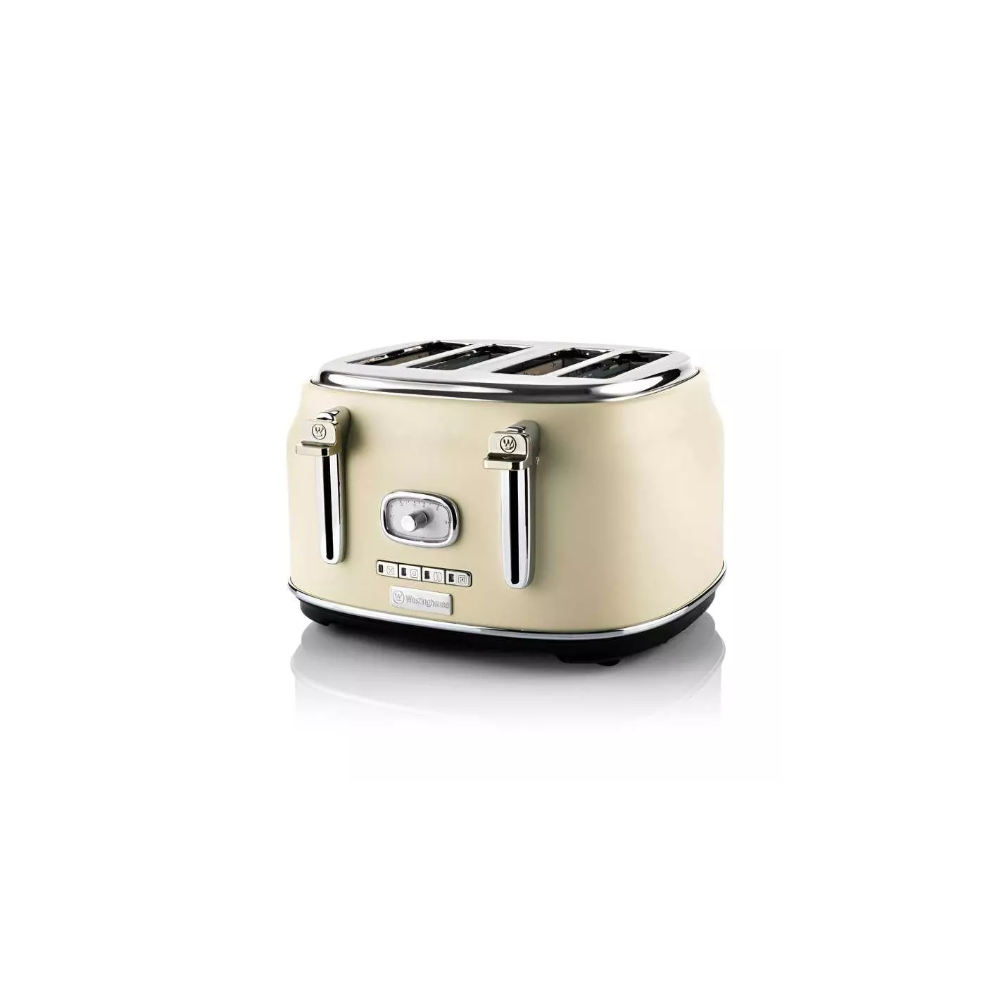 Un aspecto retro para un desayuno delicioso. Es ideal para tostar, ya que te permite elegir el nivel de tostado que tu prefieras. Es apta para toda la familia porque sus 4 ranuras anchas permiten tostar hasta 4 rebanadas a la vez.