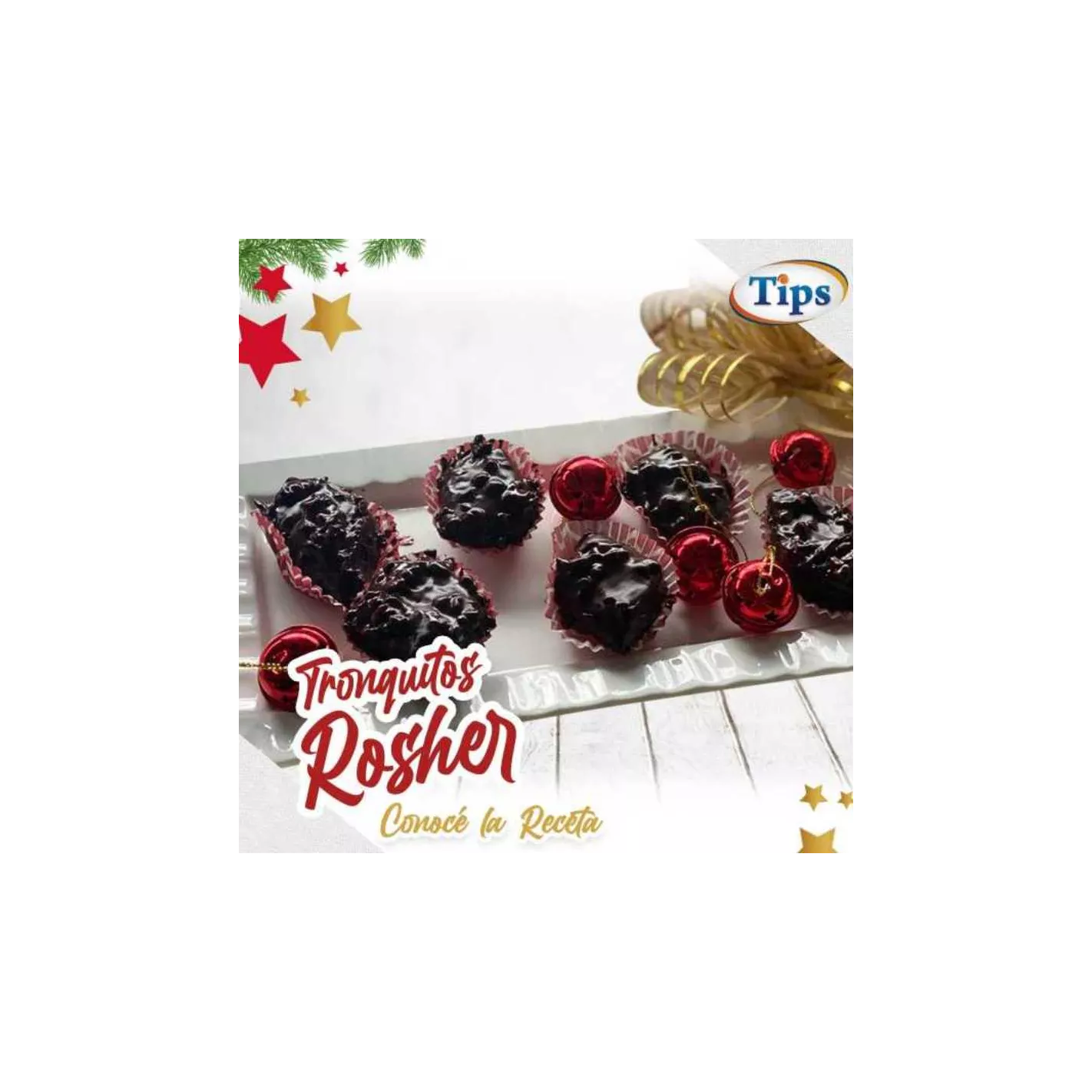 5-Derrita el chocolate con la crema. Agregue las almendras y revuelva bien. Sumerja los tronquitos en el chocolate. Deje secar y coloque en cápsulas de papel.
