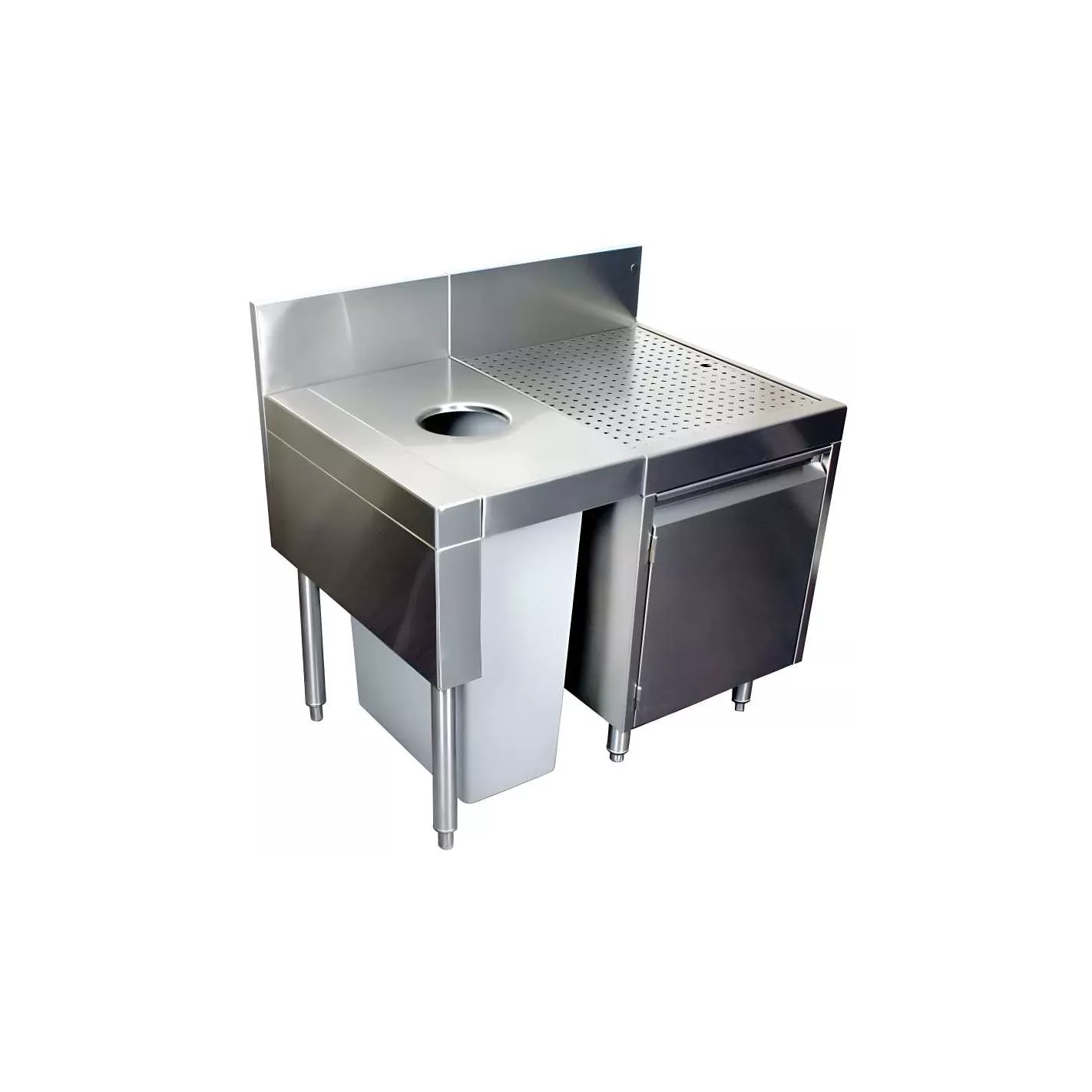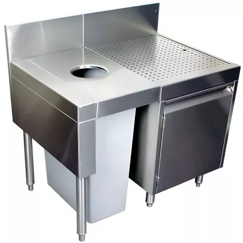 Esta unidad de desechos secos proporciona una manera fácil de deshacerse de los desechos mientras se mantiene completamente fuera del camino. Idealmente, se puede montar en el extremo izquierdo de una configuración debajo de la barra para un acceso conveniente.