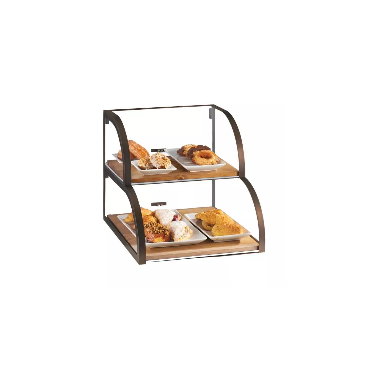 Esta urna exhibidora es muy conveniente almacenar alimentos, gran espacio para almacenamiento, exhibición de pan y productos horneados.  Esta urna de repostería es perfecta para colocar en un mostrador en tiendas de conveniencia, panaderías o tiendas de comestibles para mostrar bagels, donas o pasteles. Con una parte delantera inclinada, esta vitrina se adapta a cualquier establecimiento.