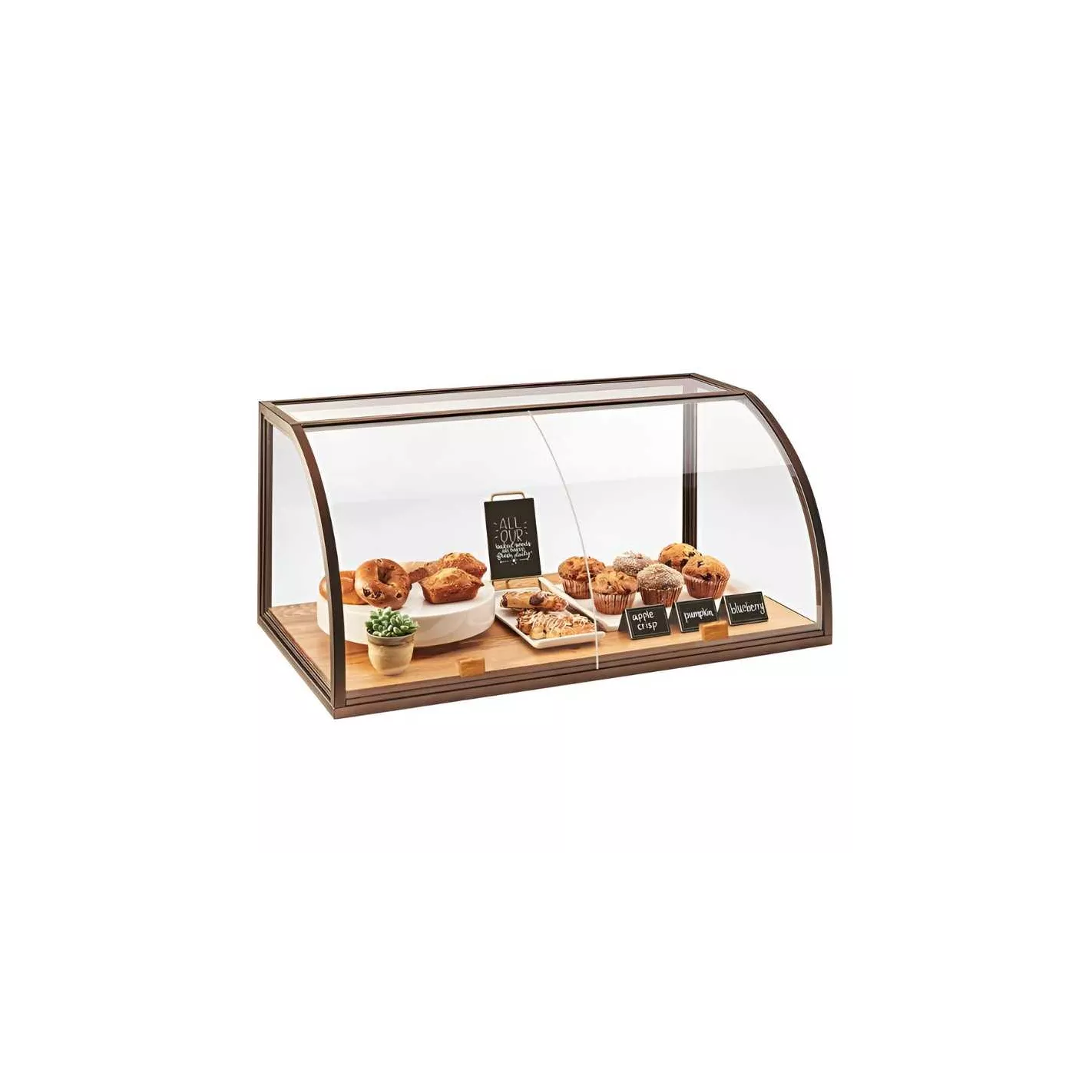 Esta urna exhibidora es muy conveniente almacenar alimentos, gran espacio para almacenamiento, exhibición de pan y productos horneados. Esta urna de repostería es perfecta para colocar en un mostrador en tiendas de conveniencia, panaderías o tiendas de comestibles para mostrar bagels, donas o pasteles. Con una parte delantera inclinada, esta vitrina se adapta a cualquier establecimiento.MATERIAL: PLASTICO