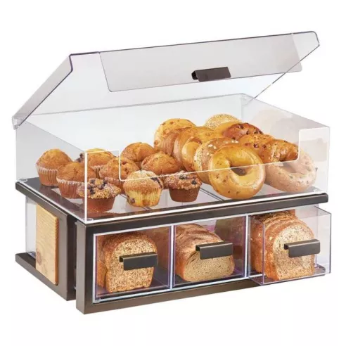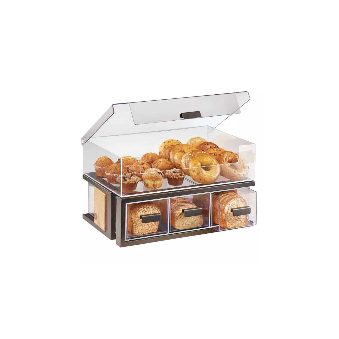 Esta urna exhibidora es muy conveniente almacenar alimentos, gran espacio para almacenamiento, exhibición de pan y productos horneados. Esta urna de repostería es perfecta para colocar en un mostrador en tiendas de conveniencia, panaderías o tiendas de comestibles para mostrar bagels, donas o pasteles. Se adapta a cualquier establecimiento.