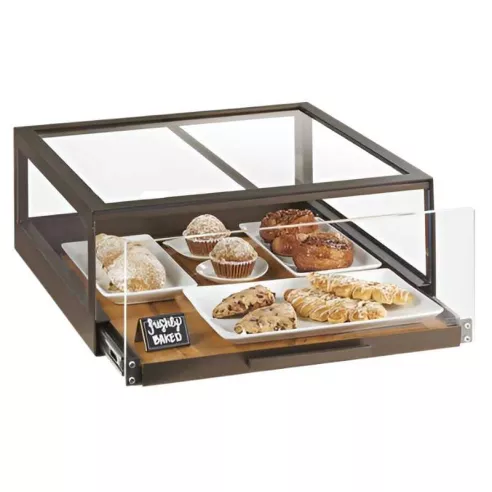 Esta urna exhibidora es muy conveniente almacenar alimentos, gran espacio para almacenamiento, exhibición de pan y productos horneados. Esta urna de repostería es perfecta para colocar en un mostrador en tiendas de conveniencia, panaderías o tiendas de comestibles para mostrar bagels, donas o pasteles. Esta vitrina se adapta a cualquier establecimiento.