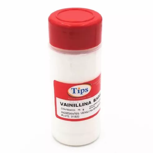 Añade una fragancia dulce que realza el sabor de otros ingredientes, la vainillina es uno de los aromas más utilizados del mundo, que aporta un aroma en las preparaciones idéntico al de la vainilla natural. La vainillina se utiliza mucho como agente aromatizante en alimentación, sobre todo en pastelería. Se utiliza en cremas, helados, pasteles y otras preparaciones culinarias, añadiendo un poco del polvo. Está presente además, en muchas recetas de licores y de café como aromatizante.