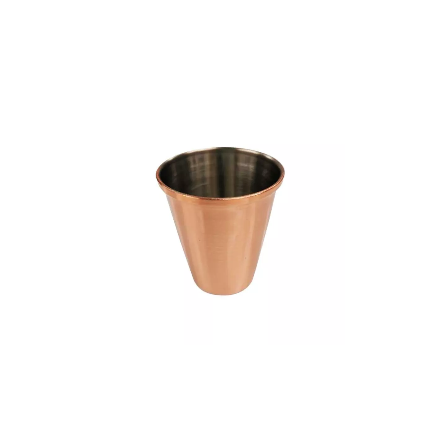 Este baso de acero inoxidable de tamaño tienen una capacidad de 2 onzas o 59 mililitros. Este base es resistente a la corrosión resistirá los cambios de temperatura sin deformarse. Su revestimiento de cobre le da un toque elegante a su mesa. Para mayor comodidad, este vaso se puede apilar mientras se almacena y su borde antiatasco garantiza una separación a prueba de problemas para una configuración eficiente durante su próximo evento.