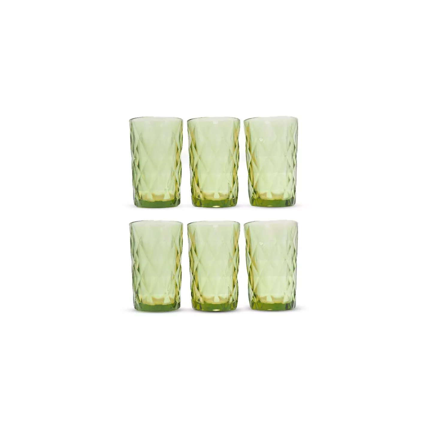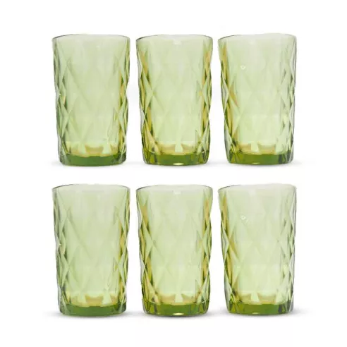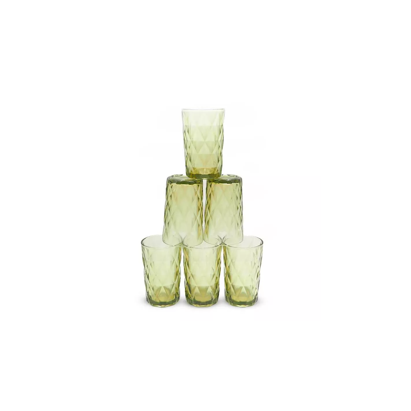 Vaso de Vidrio de 350 Mililitros de Color Verde, Set de 6 Unidades TIPS KFG-004GN/HJ