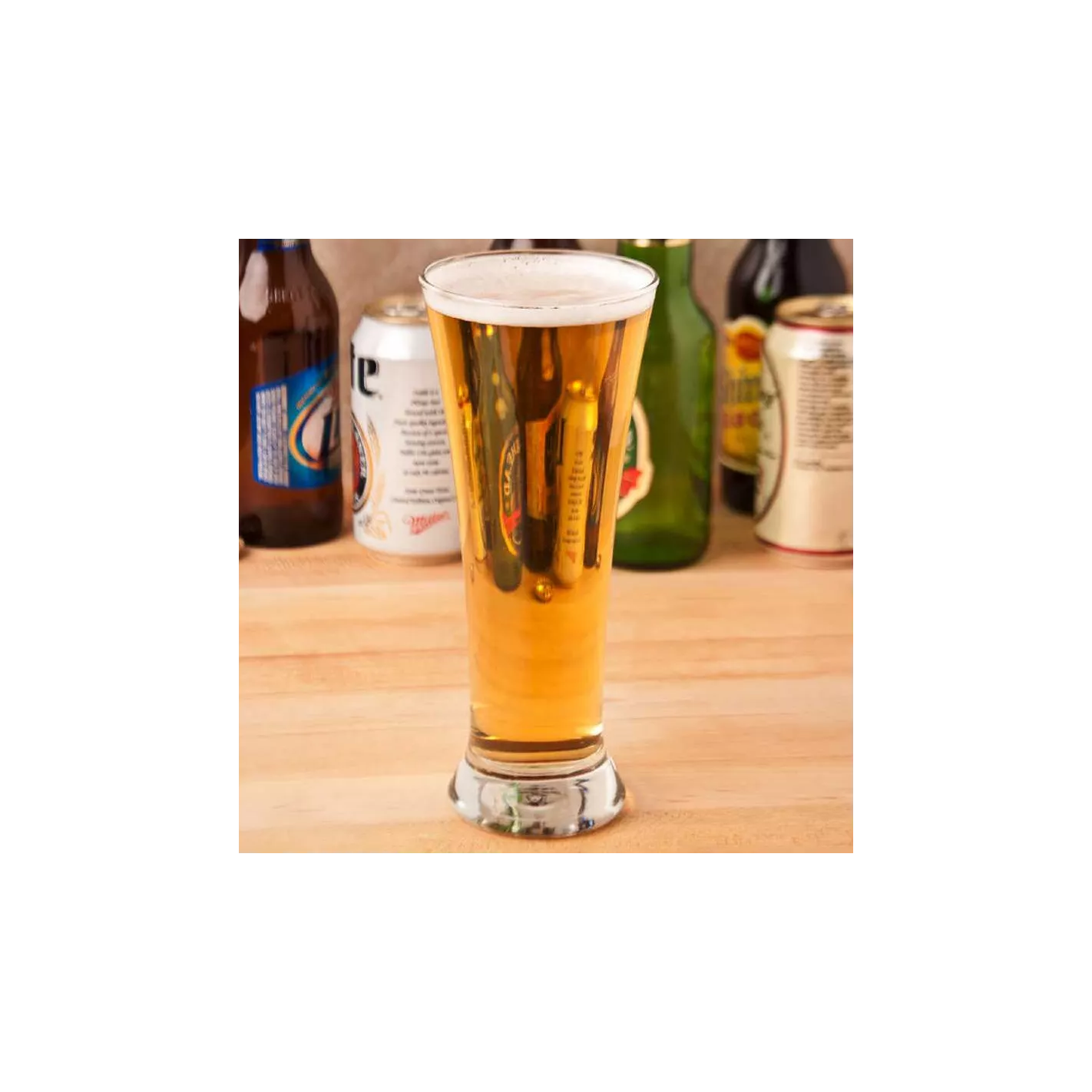 Muestra la rica textura y claridad de tus pilsners, cervezas y cervezas más populares con este tradicional vaso de vidrio pilsner personalizable de 16 onzas. Cuenta con lados acampanados y una base extra gruesa para la apariencia inconfundible de un pilsner alto y tradicional. El diseño cónico de este vidrio mantiene la cabeza, mientras que el diseño cónico dibuja los aromas y sabores en la parte superior. Los clientes notarán y apreciarán la diferencia al usar el vaso adecuado para servirles una cerveza fresca y refrescante. La claridad cristalina también mejora su presentación para mostrar el color y la carbonatación de una cerveza. Gracias a una llanta resistente a las virutas, este vidrio es una adición duradera a su colección de cristalería. Con una funda gruesa, el pie de este vaso está perfectamente equilibrado para que pueda descansarlo con confianza en bandejas, mesas y mostradores.