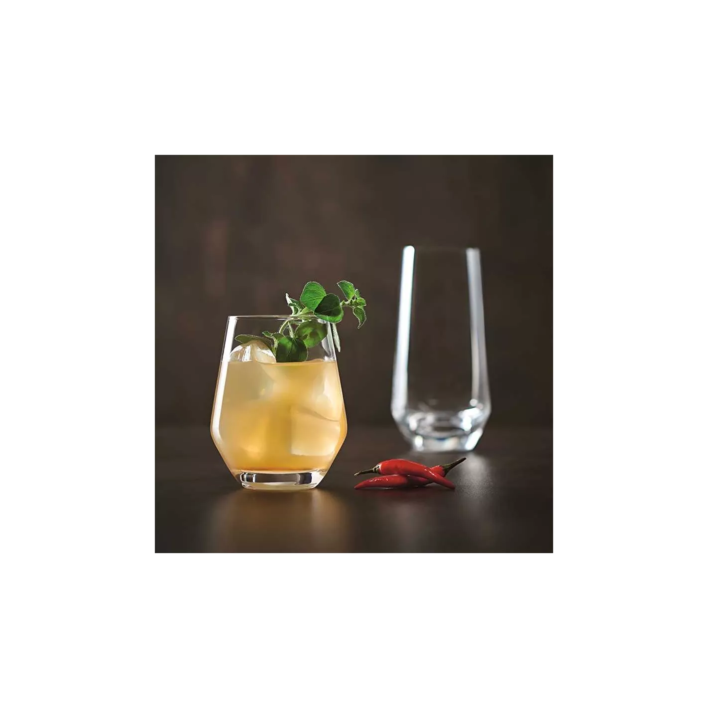 Su atractivo diseño de lados rectos no solo pone el foco en el color de sus tés helados, limonadas o cócteles, sino que también deja un amplio espacio para mezclar y servir bebidas en un solo vaso.