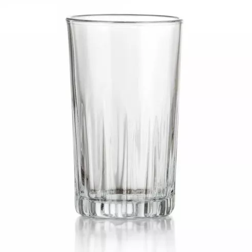 Vaso High Ball de la línea Kristalino con capacidad de 13.3 onzas / 393 mililitros. Se caracteriza por ranuras en la parte baja, que dan la impresión de cristal cortado. Este vaso es perfecto para refrescos, agua, jugos y mucho más. Medidas: 14.12 centimetros de altura x 7.67 centimetros diámetro.