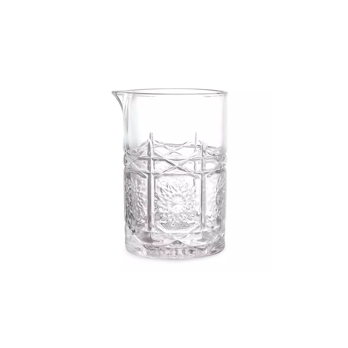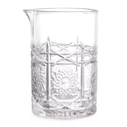 Este vaso mezclador tiene una capacidad de 700ml, ideal para colocar mucho hielo y una mayor cantidad de líquido. El espesor de la pared es mayor que el de los vasos comunes, lo que permite un manejo más seguro y reduce la temperatura resultante del contacto de las manos con el vidrio.
