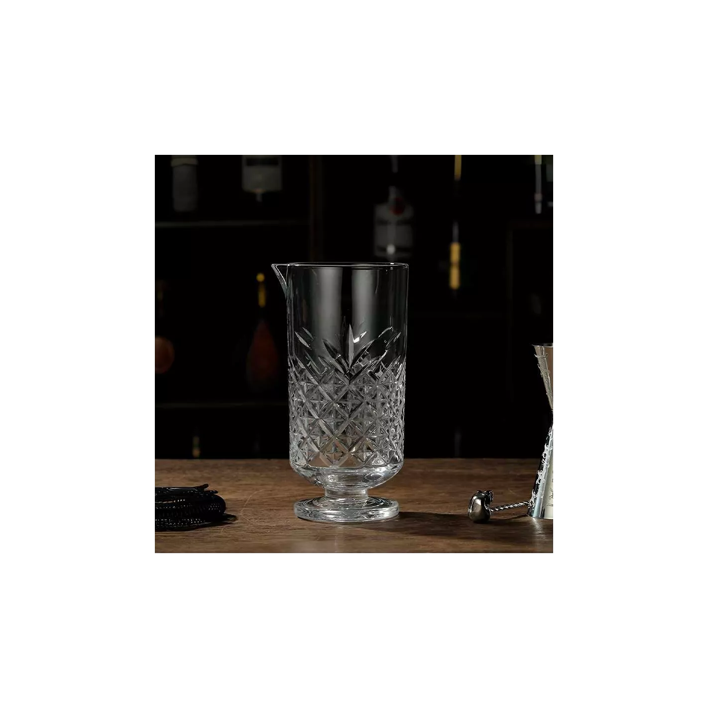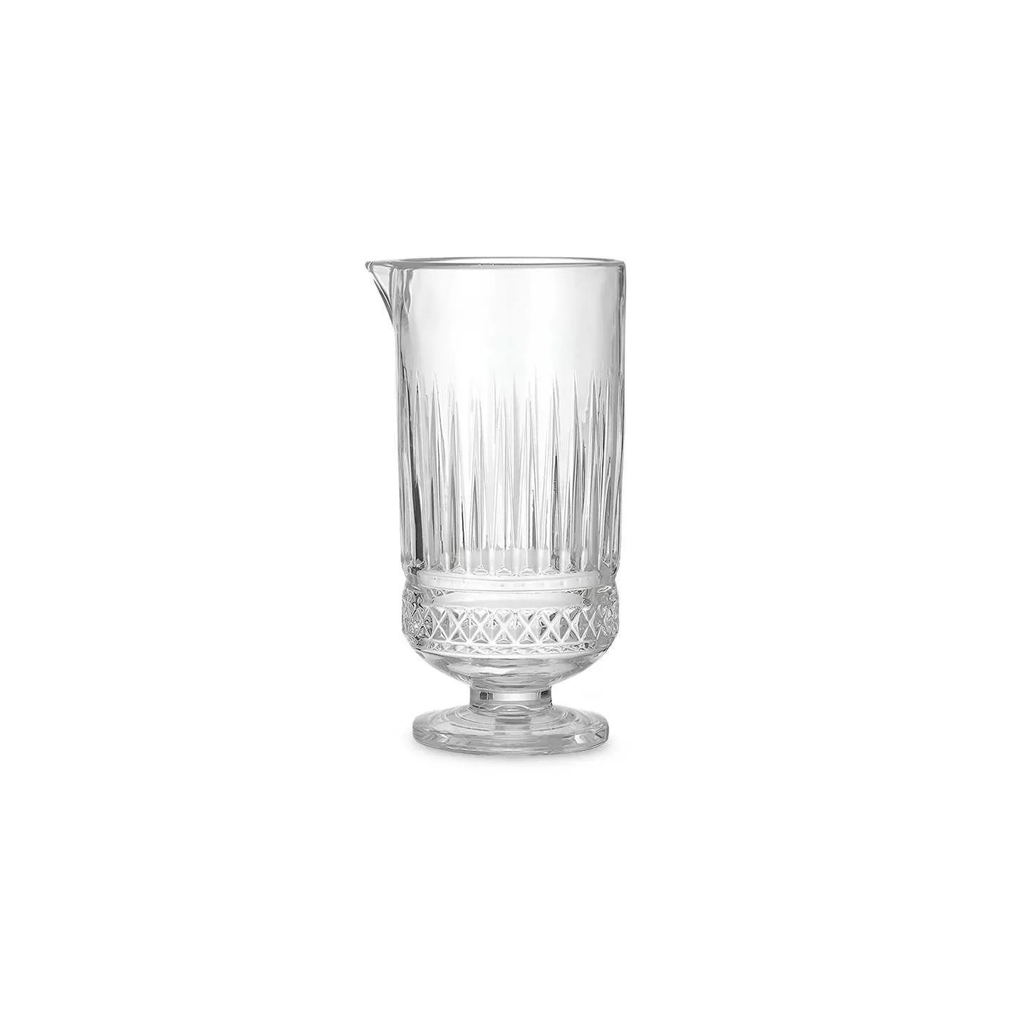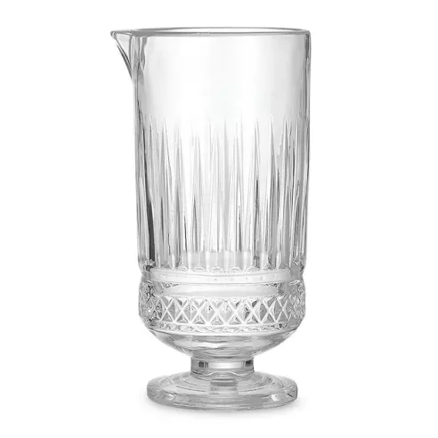 Este vaso mezclador tiene una capacidad de 750ml, ideal para colocar mucho hielo y una mayor cantidad de líquido. El espesor de la pared es mayor que el de los vasos comunes, lo que permite un manejo más seguro y reduce la temperatura resultante del contacto de las manos con el vidrio.