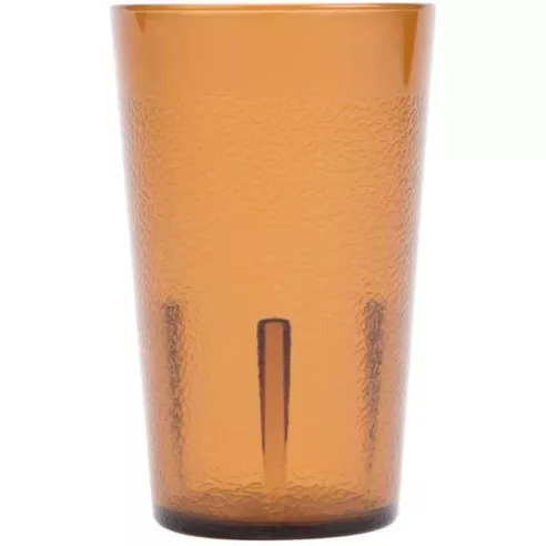 Hecho de plástico SAN resistente a astillas, manchas y roturas. La forma cónica y las orejetas de apilamiento integradas permiten que las tazas se aniden sin atascos.