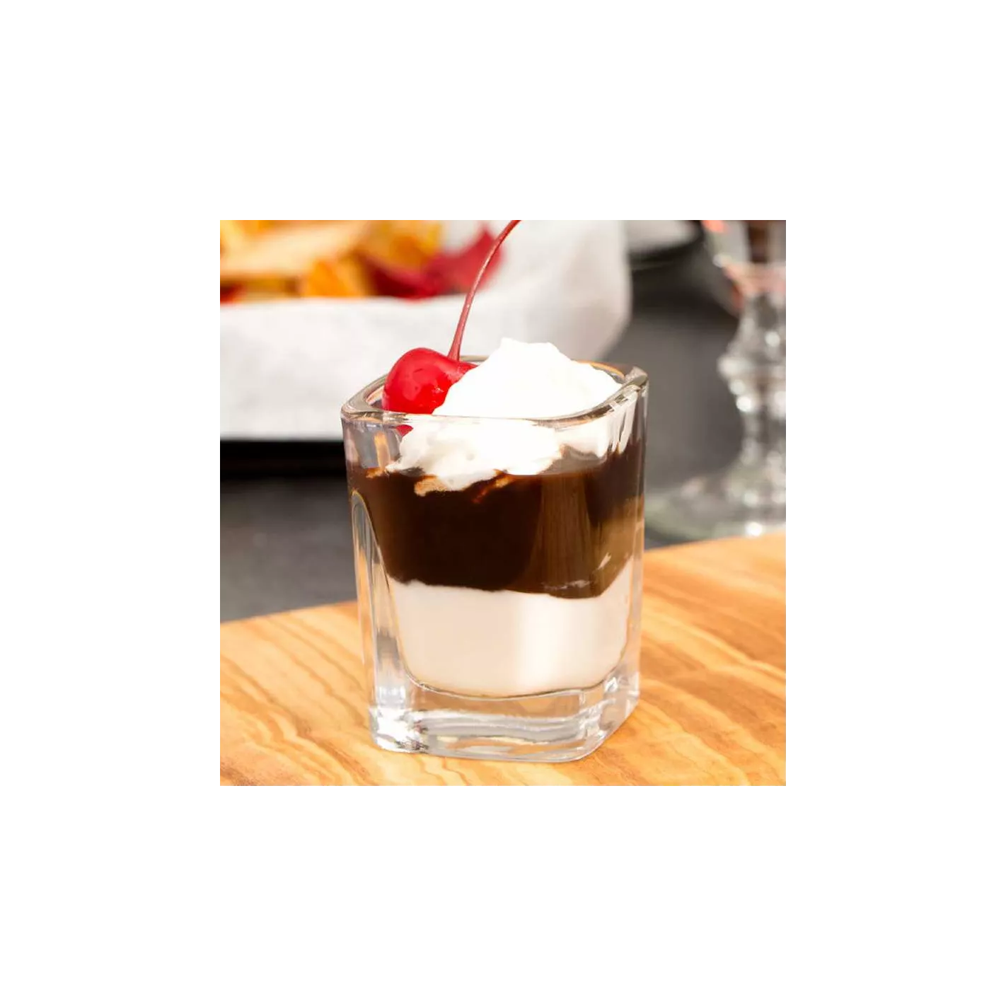Su diseño moderno y cuadrado combina líneas limpias, rectas y cristal transparente para crear un aspecto atrevido que es ideal para servir pequeñas muestras de cócteles, tomas especiales y postres exclusivos. Si bien la funda gruesa de este vaso brinda estabilidad y equilibrio superiores, su borde enrollado garantiza que sus clientes puedan tomar sus bebidas fácilmente. Sirva a sus clientes con estilo y mejore su servicio de bebidas o alimentos agregando este vidrio de prisma a su surtido.