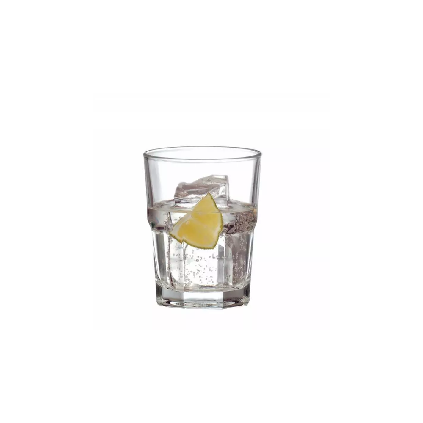 Esta línea se caracteriza por ser de dos niveles con grietas en la parte de abajo. Es elegante, resistente e ideal para bares. Este vaso rockero boston de vidrio es resistente para un uso constante, lavar con agua tibia y jabón.