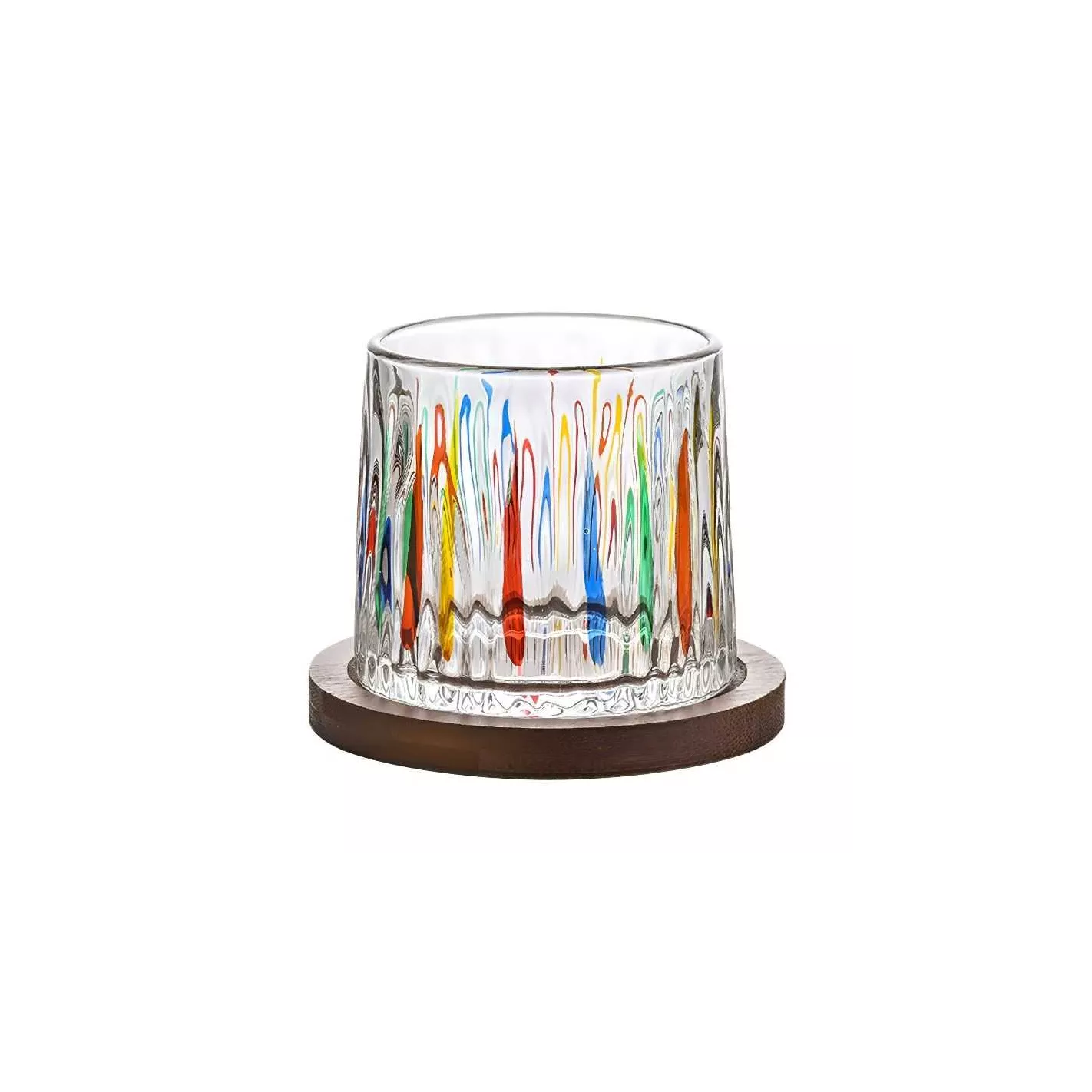 Vaso Whiskero de Color Arcoiris con Base de Madera de 270 Mililitros VETRO DHD-033