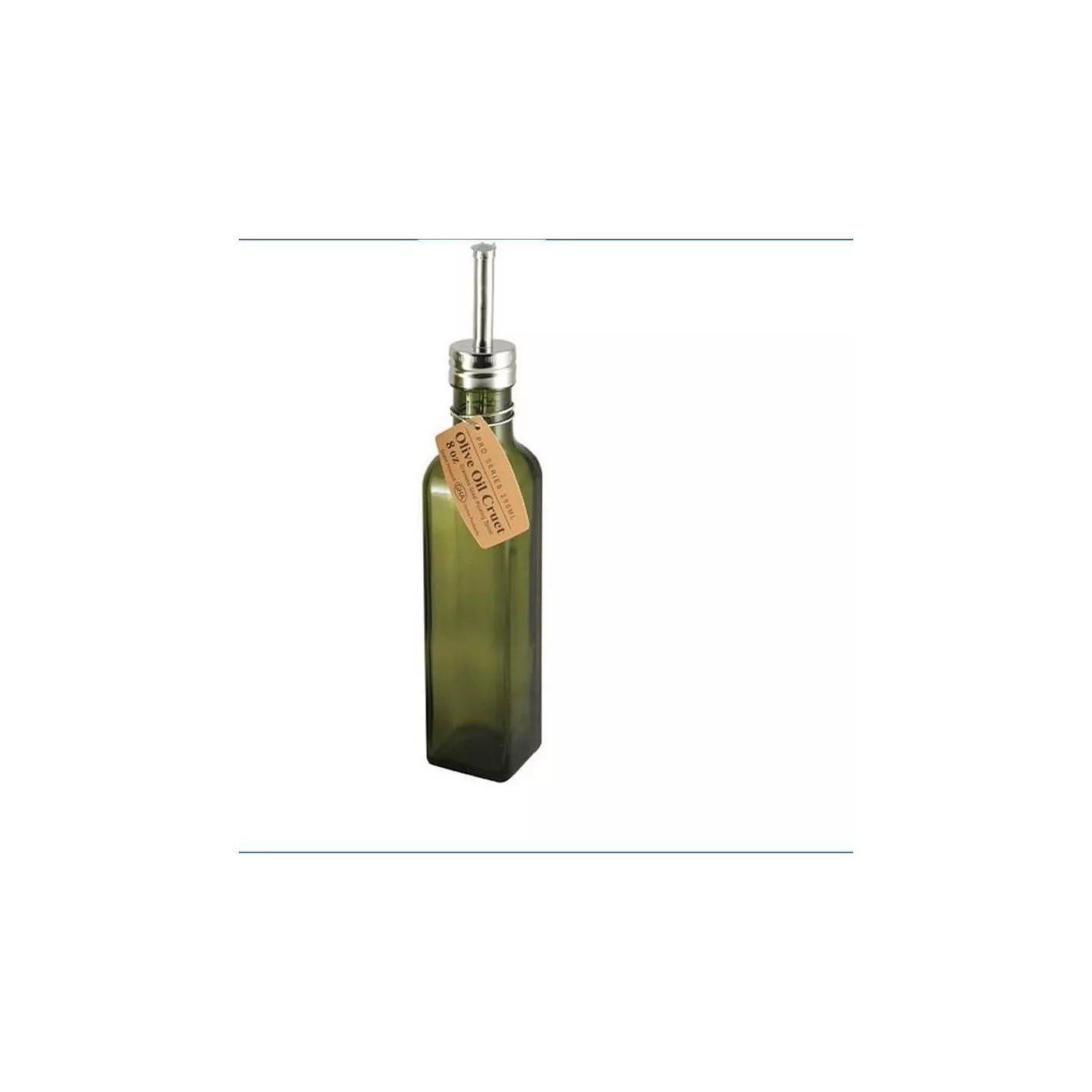 Esta vinagrera de aceite de oliva es una excelente adición a su mesa y cocina como una forma de contener su aceite de oliva con una forma elegante de exhibirlo. Hecha de vidrio duradero, la botella teñida de verde viene con un pico vertedor de acero inoxidable para una dispensación simple y una limpieza mínima.