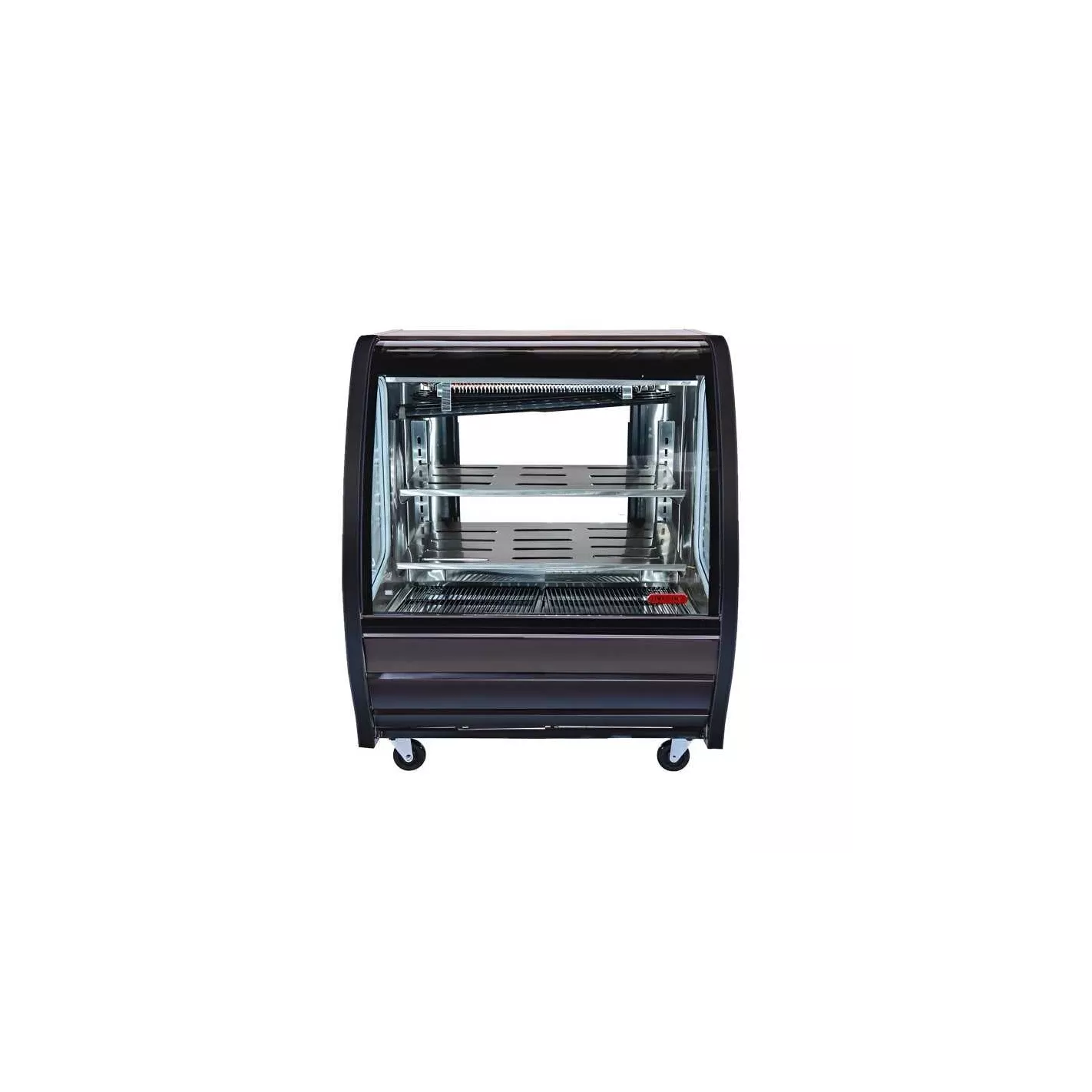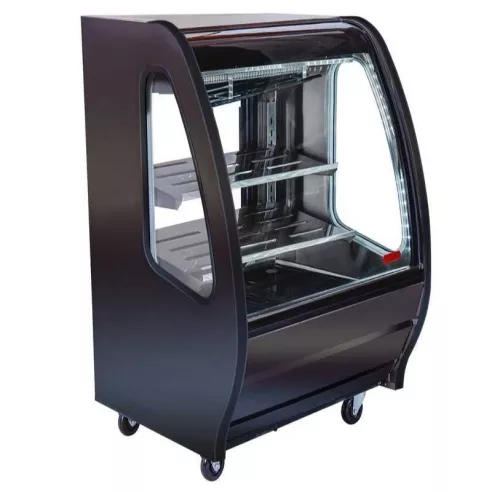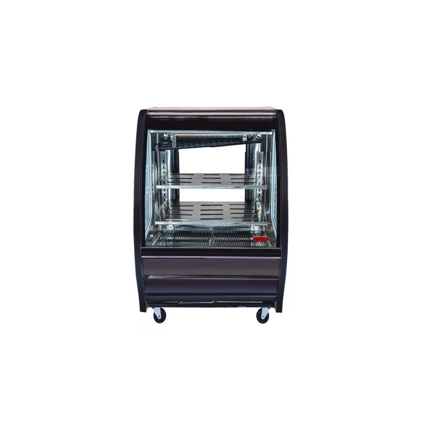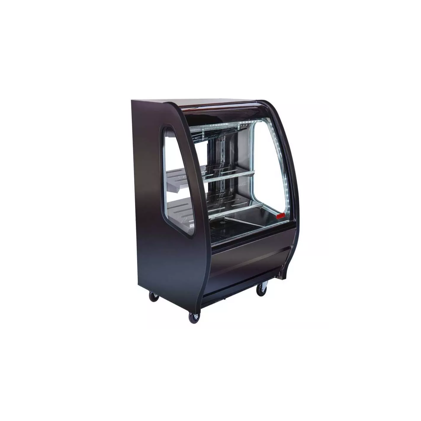 Nuestra vitrina presenta ruedas incorporadas de alta resistencia, luces LED, amplio cristal frontal panorámico y dos grandes ventanas laterales para una máxima visibilidad del producto. La vitrina incluye dos bandejas de exhibición de acero inoxidable y una bandeja inferior para exhibir productos adicionales. Esta vitrina refrigerada cuenta con un controlador digital SMART que viene equipado con tres modos de función para que pueda administrar el rendimiento del equipo. Puede configurar su controlador en el modo apagado para que las luces se apaguen mientras el equipo continúa funcionando.