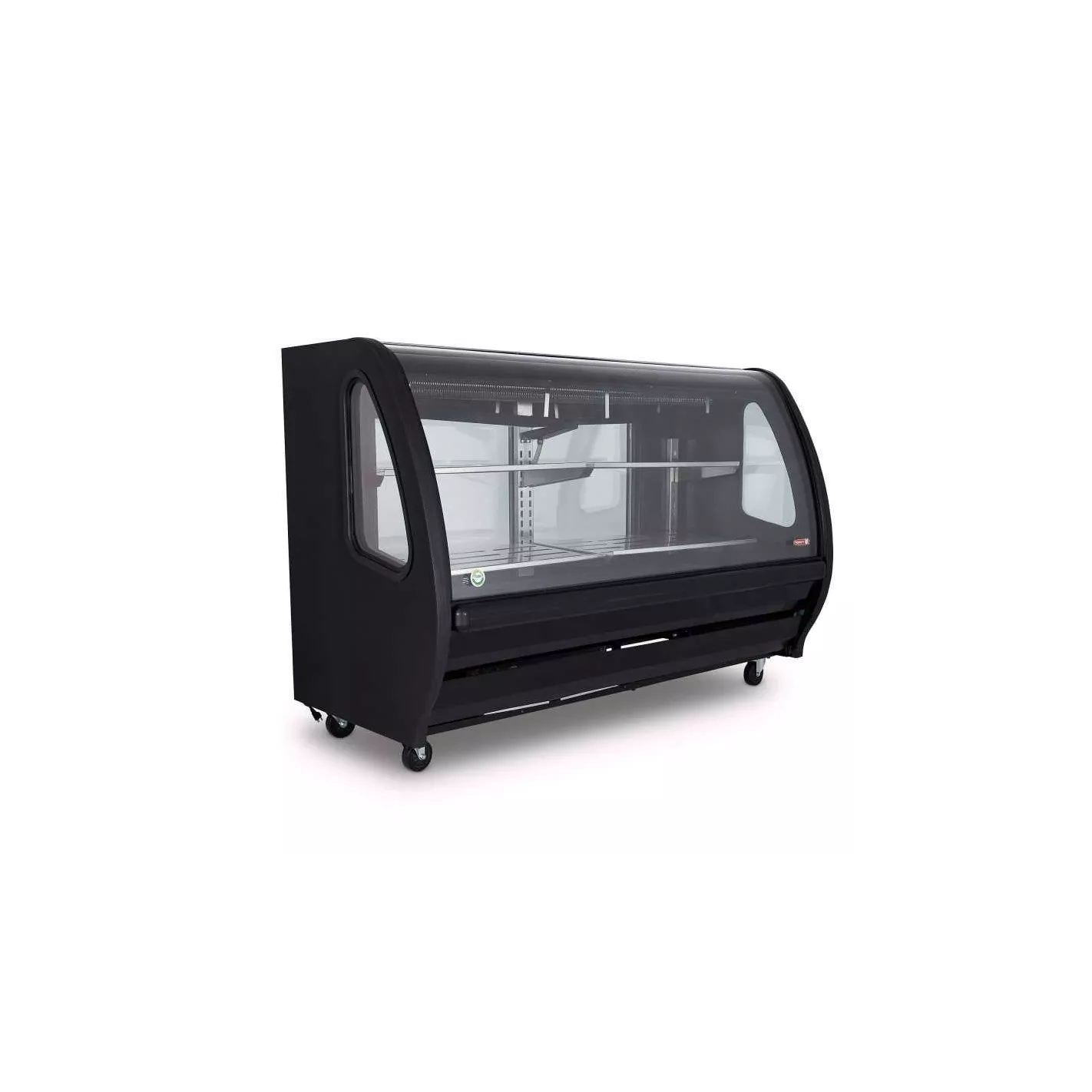 Vitrina de 2 niveles de exhibición, control digital de temperatura, puertas posteriores de cristal, techo de acero inoxidable ideal para utilizarla como mostrador dentro de tu establecimiento.