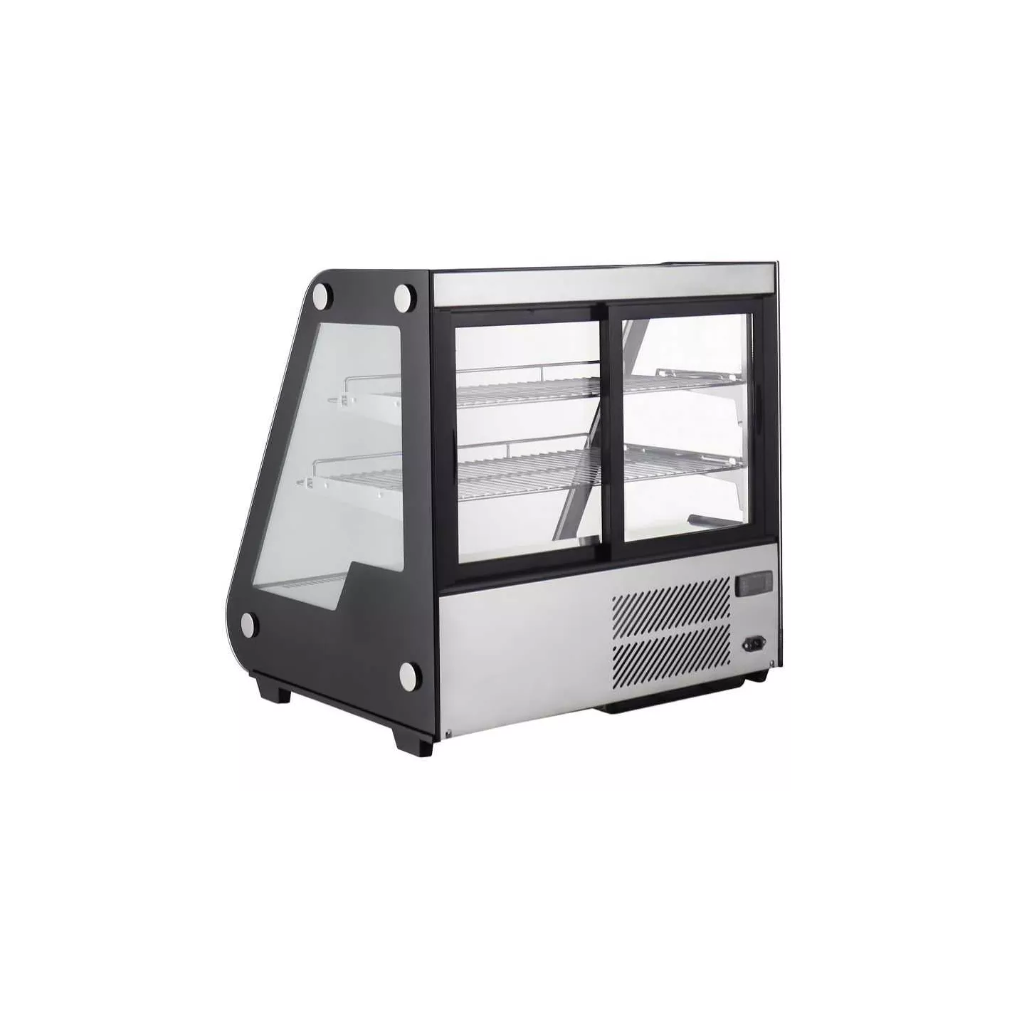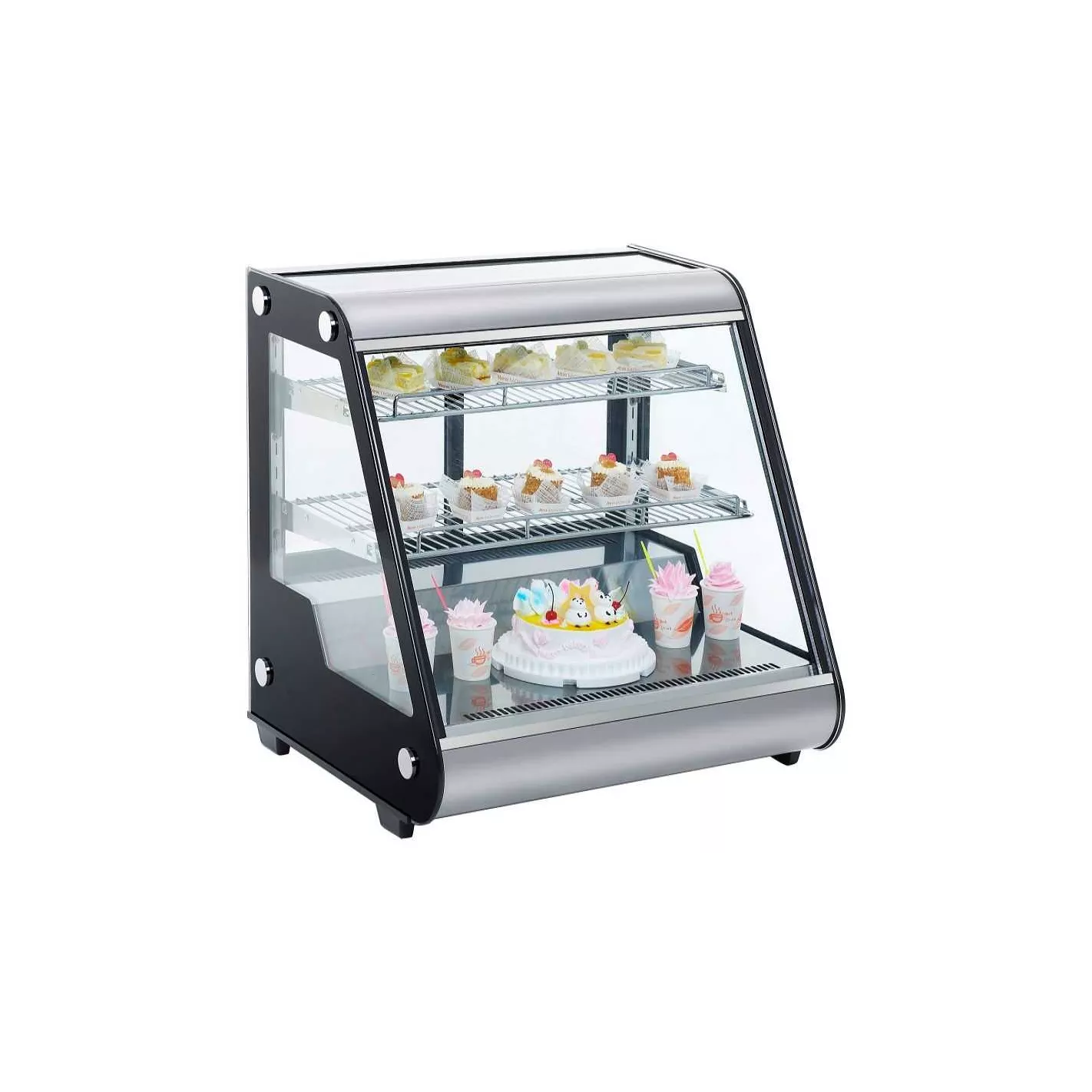 La vitrina refrigerada le permite exhibir postres fríos como tres leches o queques húmedos, frutas de toda variedad, bebidas y snacks, de modo que sus clientes reciben productos frescos y visibles para motivar el antojo por sus productos. Quantum Pro le ofrece vitrinas refrigeradas de un acabo elegante y llamativo. Vitrina de 3 niveles color negro ideal para restaurantes, hoteles, cafeterías, panaderías y mucho más.