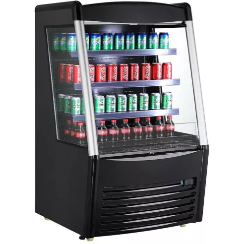 La vitrina refrigerada le permite exhibir postres fríos como tres leches o queques húmedos, frutas de toda variedad, bebidas y snacks, de modo que sus clientes reciben productos frescos y visibles para motivar el antojo por sus productos. Quantum Pro le ofrece vitrinas refrigeradas de un acabo elegante y llamativo. Vitrina de 4 niveles color negro ideal para restaurantes, hoteles, cafeterías, panaderías y mucho más.