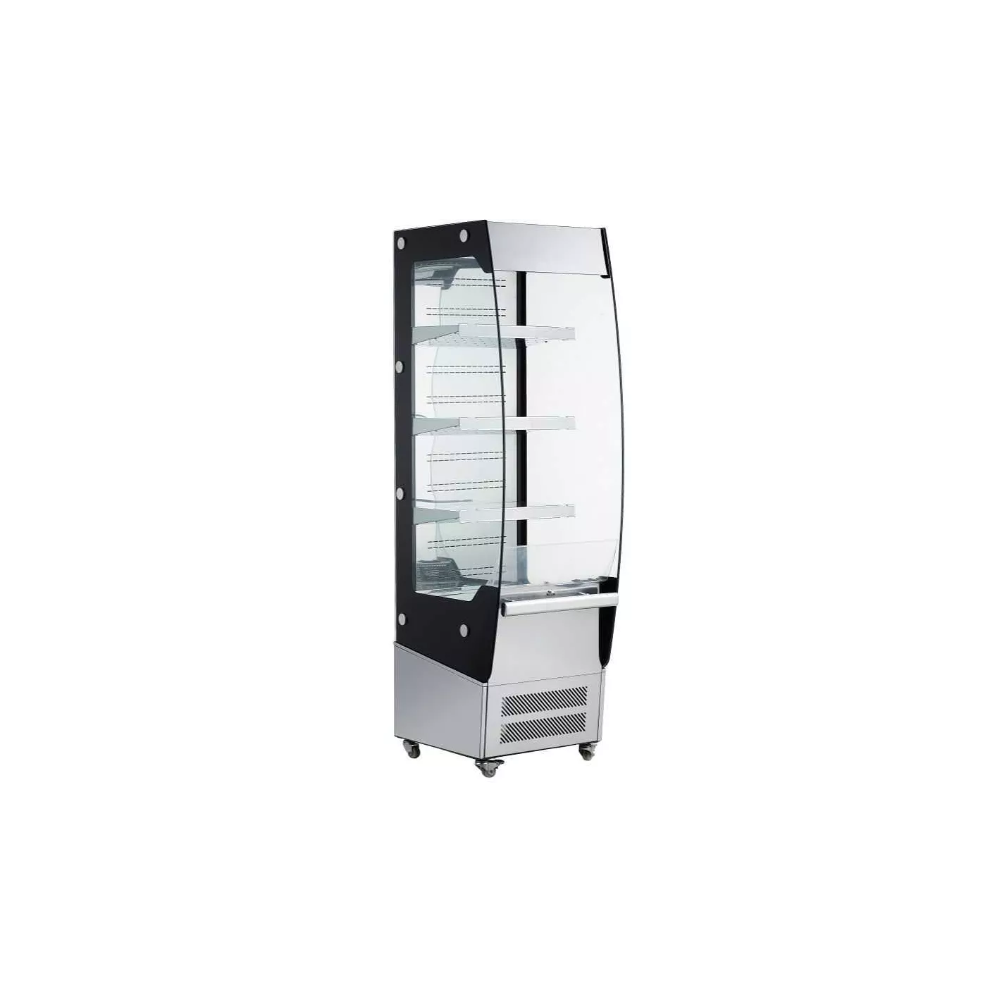 La vitrina refrigerada le permite exhibir postres fríos como tres leches o queques húmedos, frutas de toda variedad, bebidas y snacks, de modo que sus clientes reciben productos frescos y visibles para motivar el antojo por sus productos. Quantum Pro le ofrece vitrinas refrigeradas de un acabo elegante y llamativo. Vitrina de 4 niveles color plateado ideal para restaurantes, hoteles, cafeterías, panaderías y mucho más.
