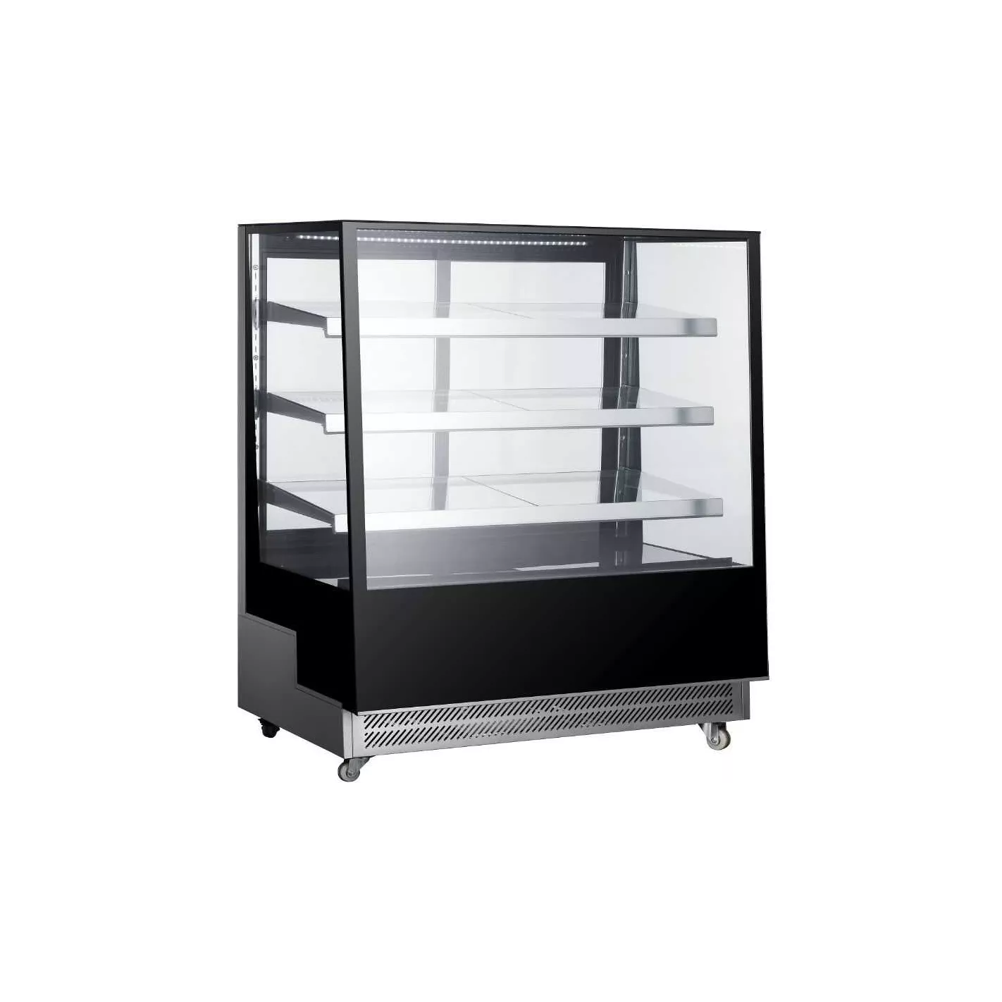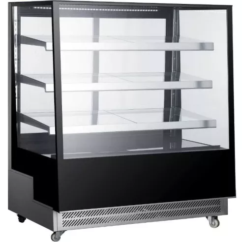 La vitrina refrigerada le permite exhibir postres fríos como tres leches o queques húmedos, frutas de toda variedad, bebidas y snacks, de modo que sus clientes reciben productos frescos y visibles para motivar el antojo por sus productos. Quantum Pro le ofrece vitrinas refrigeradas de un acabo elegante y llamativo. Vitrina de 4 niveles color negro ideal para restaurantes, hoteles, cafeterías, panaderías y mucho más.