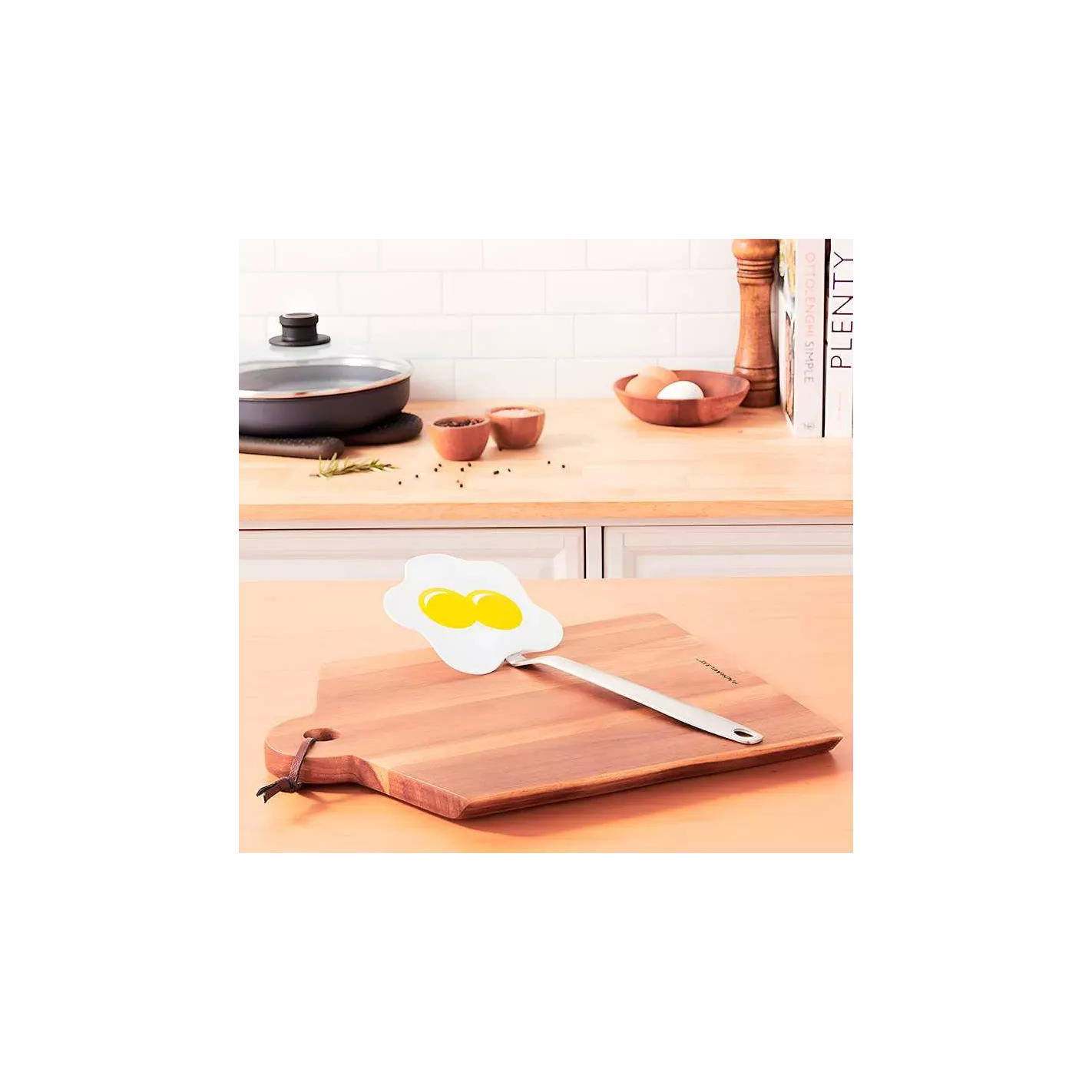 El mango de acero inoxidable proporciona una resistencia adicional al voltear. Pero, lo más importante, ¡son lindas e irresistibles! El cabezal novedoso inspira sonrisas por todas partes cuando volteas panqueques, huevos, tostadas francesas, queso a la parrilla y más. Los colores brillantes y el diseño divertido aportan diversión y funcionalidad a tu cocina. El acero cepillado proporciona estabilidad al cabezal flexible y el revestimiento de nylon en el extremo proporciona un agarre cómodo.