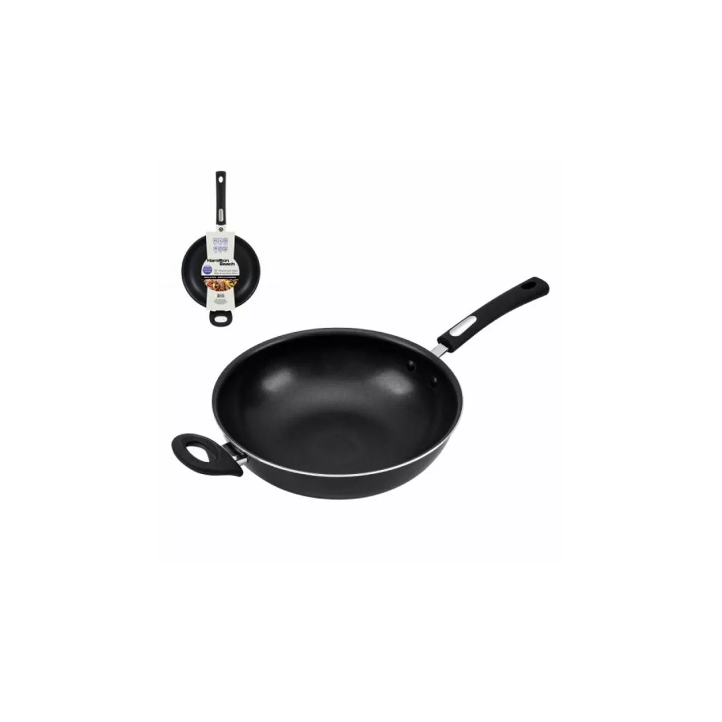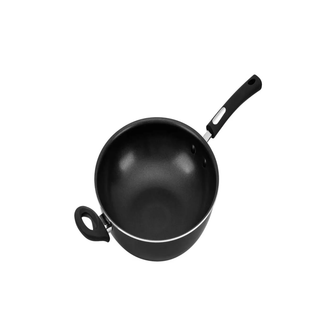 Wok de aluminio profesional para salsa que tiene todos los elementos básicos para manejar la mayoría de las tareas de utensilios de cocina. Acabado exterior negro elegante con superficie de cocción negra para una apariencia rica y contemporánea. Wok antiadherente de aluminio de alta calidad que es muy duradero y tiene un rendimiento duradero, compatible con todas las placas de cocina (vitrocerámica, halógeno, eléctrico y gas). Asas resistentes al calor, distribución uniforme del calor para que tu cocina sea más rápida.