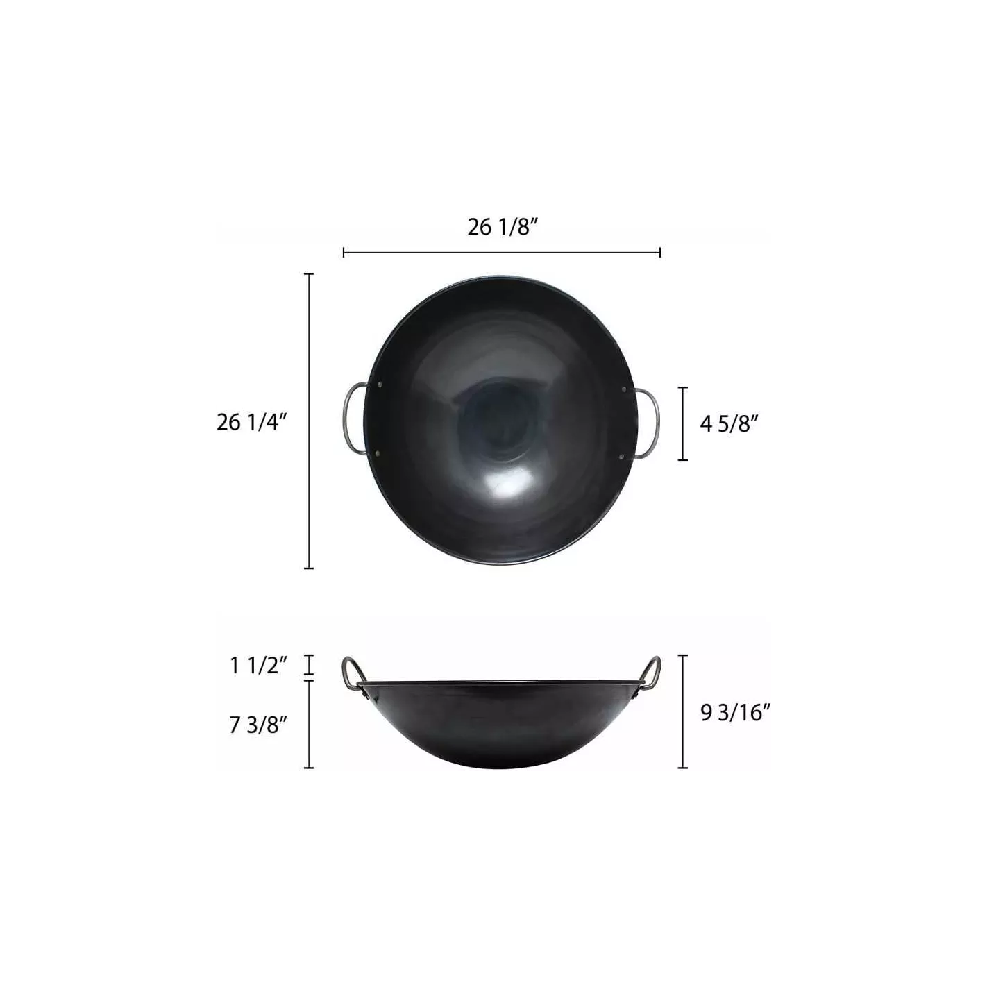 Con lados inclinados y una base redondeada, el Wok de 24 pulgadas de hierro de borde curvo proporciona una amplia superficie de cocción para agitar y arrojar ingredientes fácilmente. Hecho de hierro fundido, este wok distribuye uniformemente el calor y su mango integrado ofrece un seguro y resistente agarre aunque están destinados a preparar platos asiáticos, los woks son versátiles y se pueden usar para hacer sopas, guisos y para freír.